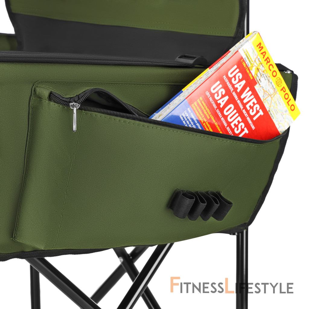 Vstavané bočné vrecká vám umožňujú ukladať malé predmety, ako sú nápoje, turistické doplnky alebo občerstvenie, ktoré sú vždy po ruke. Na zadnej strane operadla je vytlačená stupnica 15 palcov.