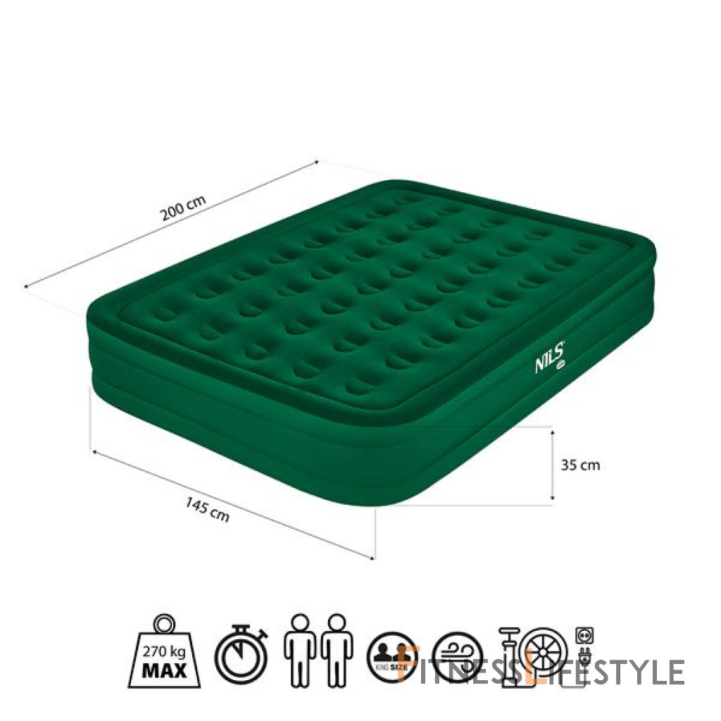 Vďaka veľkosti 200 × 145 × 35 cm matrac poskytuje priestranný a pohodlný priestor na spanie pre dvoch ľudí. Jeho šírka zaisťuje slobodu pohybu bez pocitu nepokoja a zvýšená výška až 35 cm efektívne izoluje telo zo substrátu a chráni pred studenou, vlhkosťou a nerovnomernosťou terénu. Je to ideálne riešenie pre tých, ktorí oceňujú pohodlie - doma aj počas noci na otvorenom vzduchu.