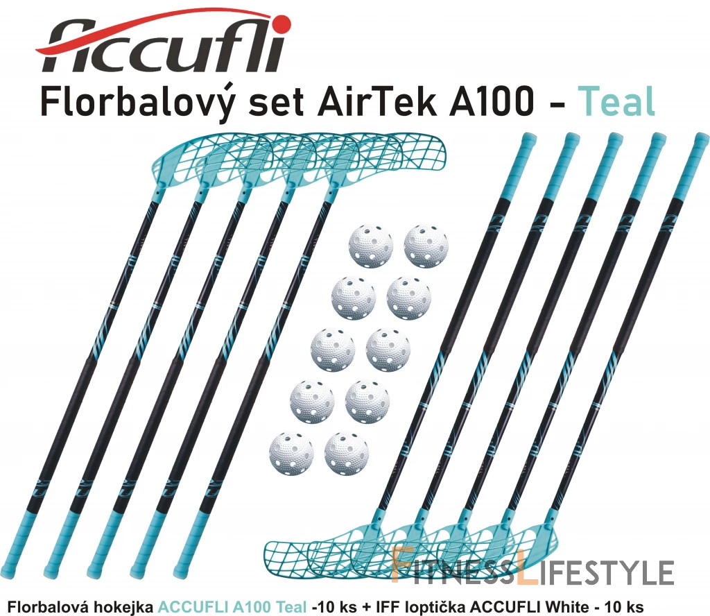 Florbalový set ACCUFLI AirTek A100 - Teal, obsahuje.10 ks hokejok Accufli AirTek A100 Teal, ktoré sú dobre navrhnuté, precízne vyrobené a testované. Ponúka... Čítať viac
