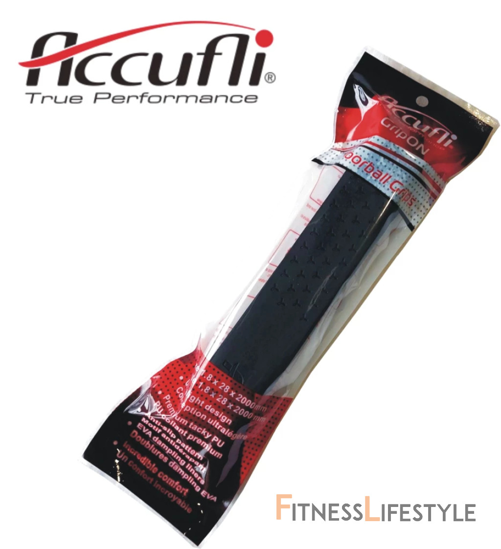 Florbalová omotávka Accufli GripON - čierna. Perforovaná, dobre saje pot, má priľnavý povrch, vďaka čomu dobre sedí v rukách a neprekĺzava.