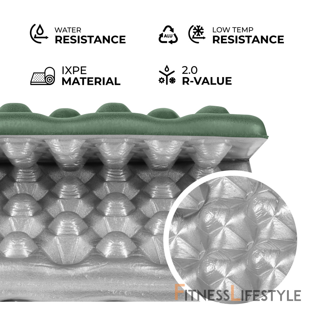 Podložka je vyrobená z vysoko kvalitnej peny IXPE - materiálu, ktorý sa vyznačuje zvýšenou flexibilitou a trvanlivosťou, pričom zostáva ľahký, odolný a nie voda. IXPE si zachováva svoj tvar aj pri intenzívnom používaní, čo zaručuje dlhé pohodlie.