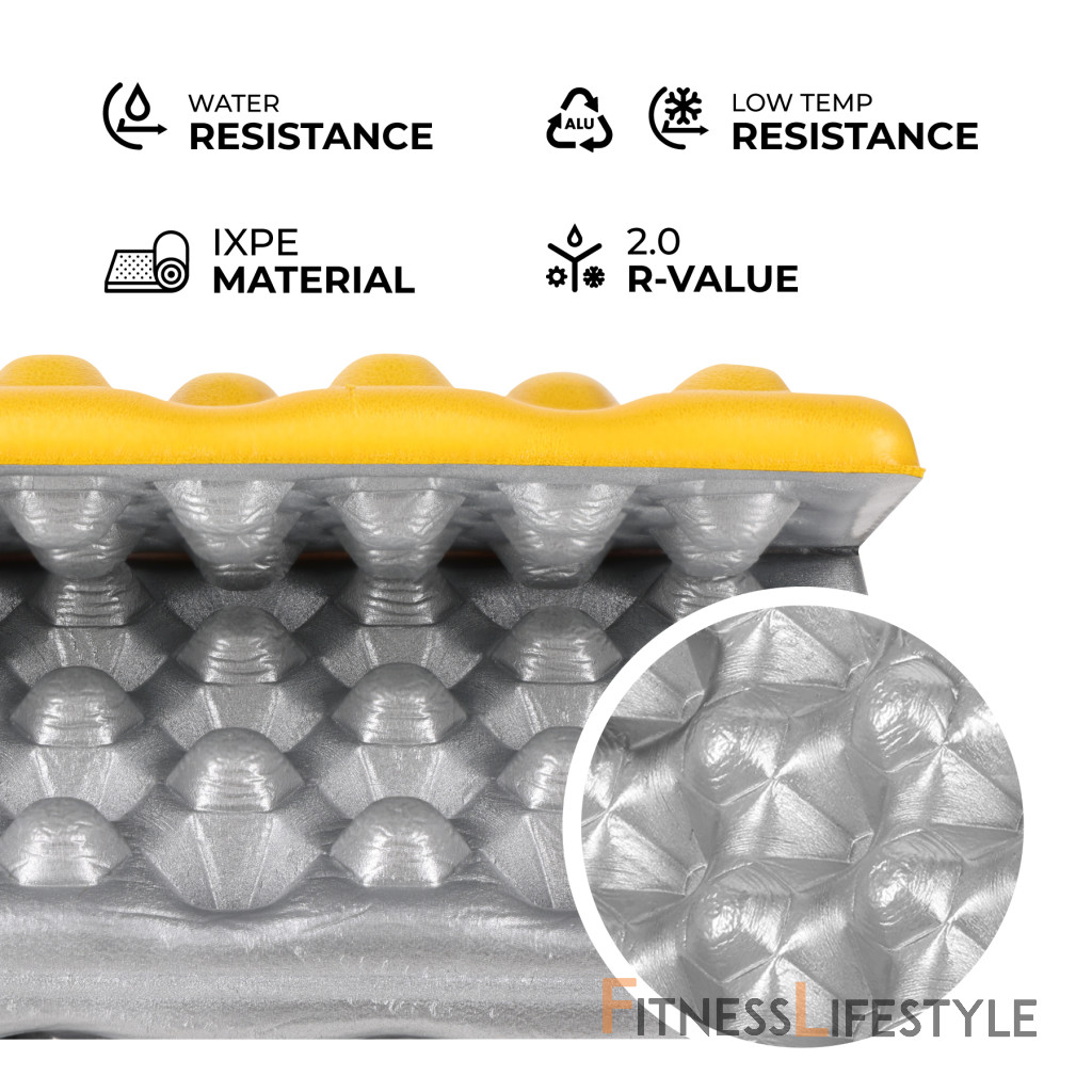 Podložka je vyrobená z vysoko kvalitnej peny IXPE - materiálu, ktorý sa vyznačuje zvýšenou flexibilitou a trvanlivosťou, pričom zostáva ľahký, odolný a nie voda. IXPE si zachováva svoj tvar aj pri intenzívnom používaní, čo zaručuje dlhé pohodlie.