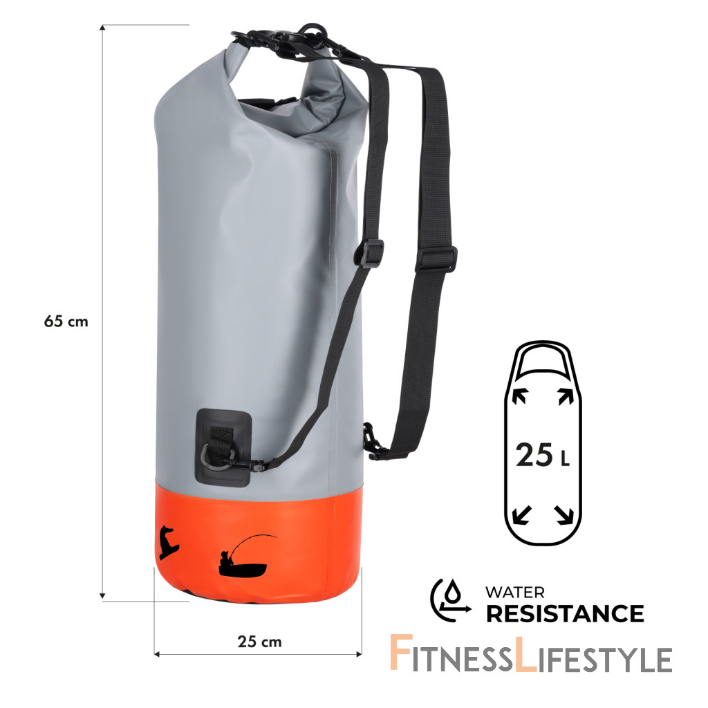 Taška je vyrobená z odolného PVC 500D a polyesterovej zmesi, ktorá chráni obsah pred vlhkosťou, bahnom a nepriaznivými poveternostnými podmienkami. Toto je ideálna voľba, ak si chcete byť istí, že vaše oblečenie, elektronika alebo dokumenty zostane suché aj v extrémnych situáciách.
