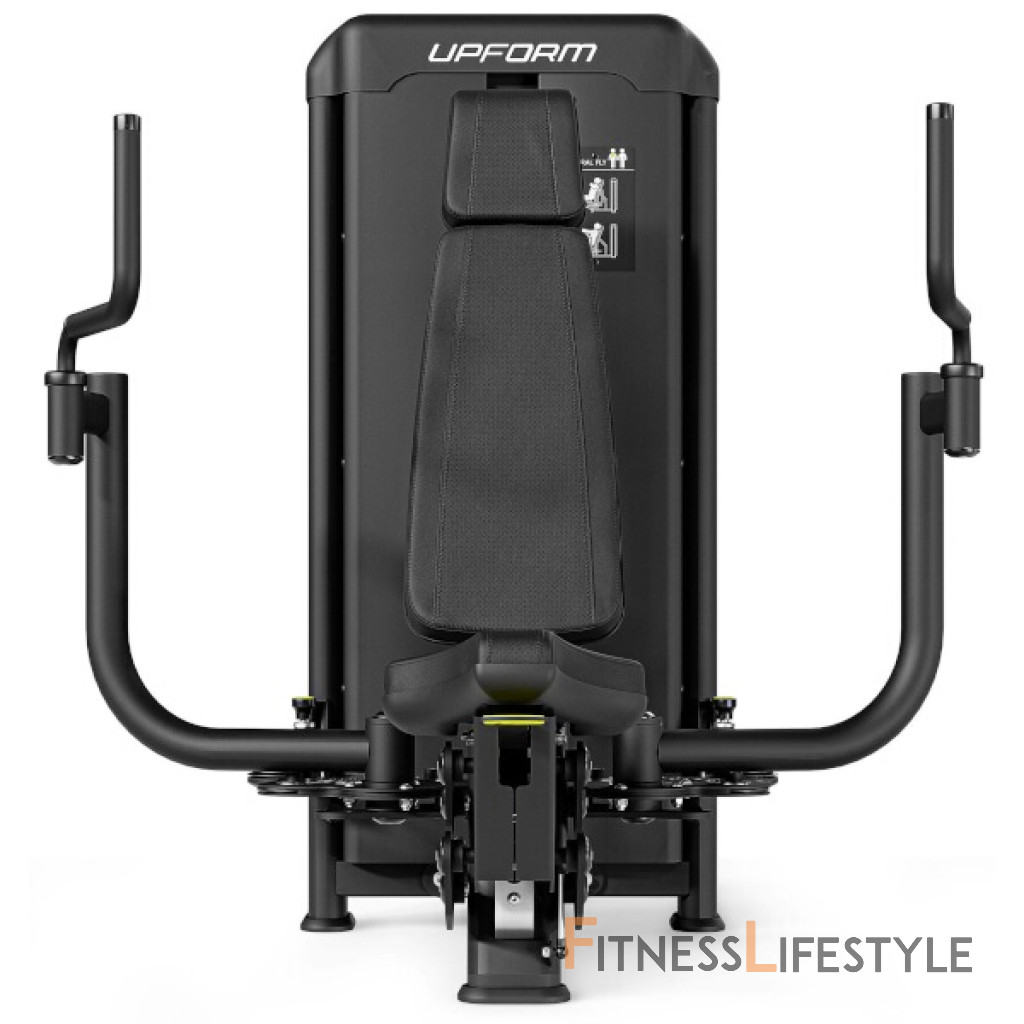 Stroj UR-U028 2.0 od UpForm je vynikajúci nástroj na posilňovanie svalov hrudníka a rúk. Pomáha budovať svalovú hmotu, zvyšuje silu a vytrvalosť. Hodí sa najmä pre ľudí, ktorí chcú zlepšiť svoj športový výkon a vyformovať si postavu. Sada závaží pozostáva zo 16 kociek s hmotnosťou 7,5 kg, teda spolu 120 kilogramov. Každá tehla v súprave hmotnosti je označená celkovou hmotnosťou. Vždy si tak rýchlo a intuitívne vyberiete požadovanú záťaž. Toto riešenie zvyšuje úroveň komfortu. Žlté, farebne odlíšené tlačidlá umožňujú rýchlu a bezproblémovú zmenu polohy ramien - dajú sa nastaviť do 9 pozícií, takže každý, kto chce na stroji UR-U028 2.0 posilňovať svaly, nájde tú správnu polohu, ktorá mu zabezpečí čo najlepšie výsledky a pohodlie pri cvičení. Päťstupňový systém nastavenia výšky sedadla vám umožňuje prispôsobiť stroj vašej vlastnej výške. To sa dá ľahko vykonať bez toho, aby ste museli zo stroja vystúpiť, pomocou špeciálneho pneumatického piestu umiestneného pod sedadlom. Poťah v čiernej farbe je vyrobený z pevnej látky odolnej voči potu a oderu. Perforácia zaisťuje dostatočné vetranie a zlepšuje odvod vlhkosti, takže čalúnenie zostane svieže a suché aj počas intenzívneho tréningu. Štruktúra produktu bola práškovo lakovaná v čiernej farbe. Pevné oceľové profily 125 x 60 x 3 mm a 60,3 x 3,2 mm zaisťujú stabilitu celej konštrukcie. Parametre: Upozornenie: