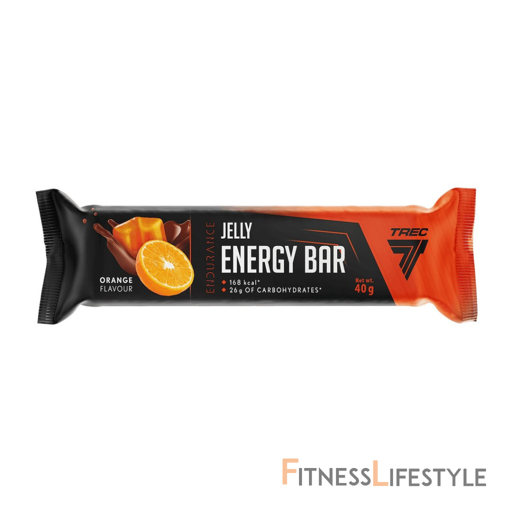 Jelly Energy Bar s pomarančovou príchuťou je tyčinka želé konzistencie, obalená v horkej čokoláde a plnená pomarančovým želé