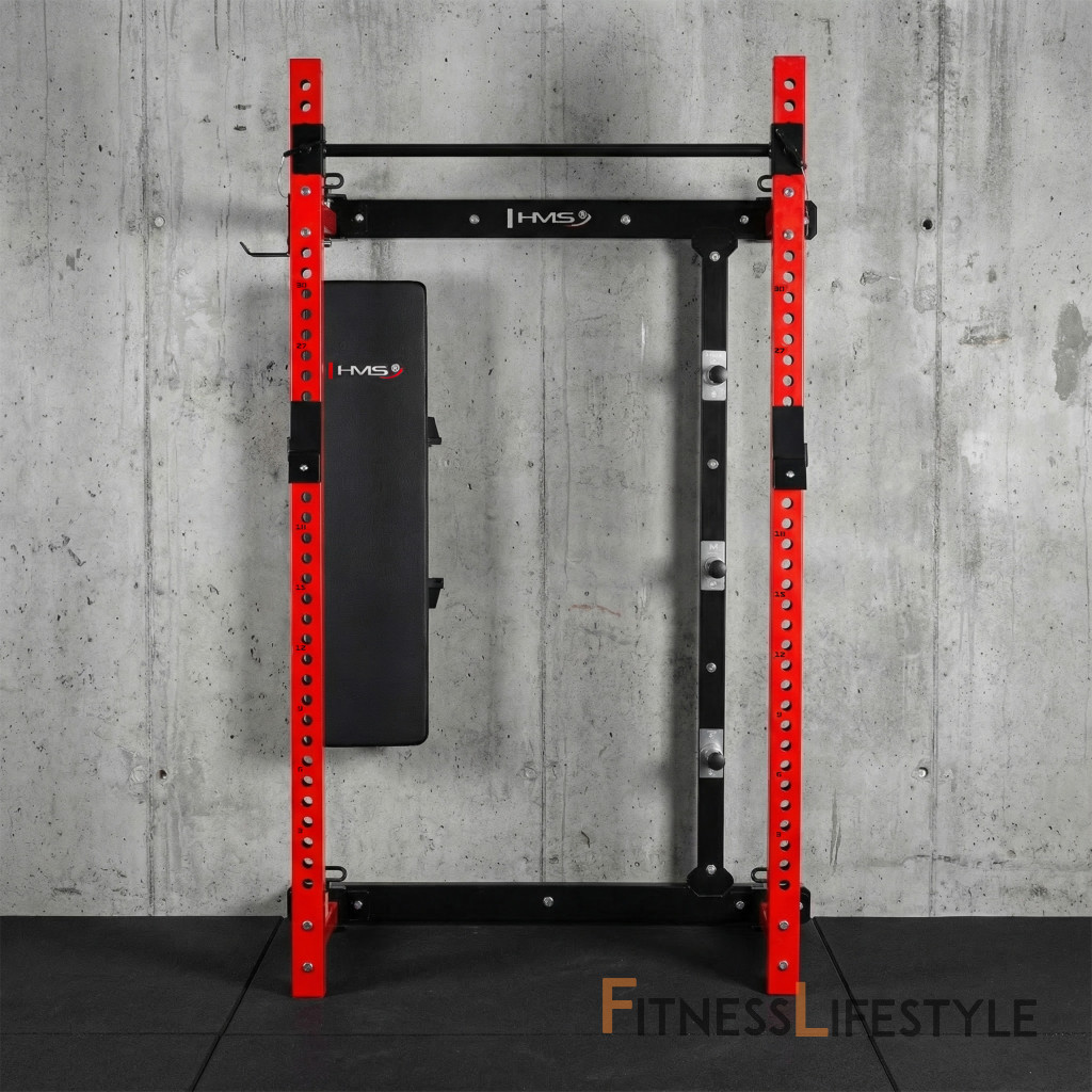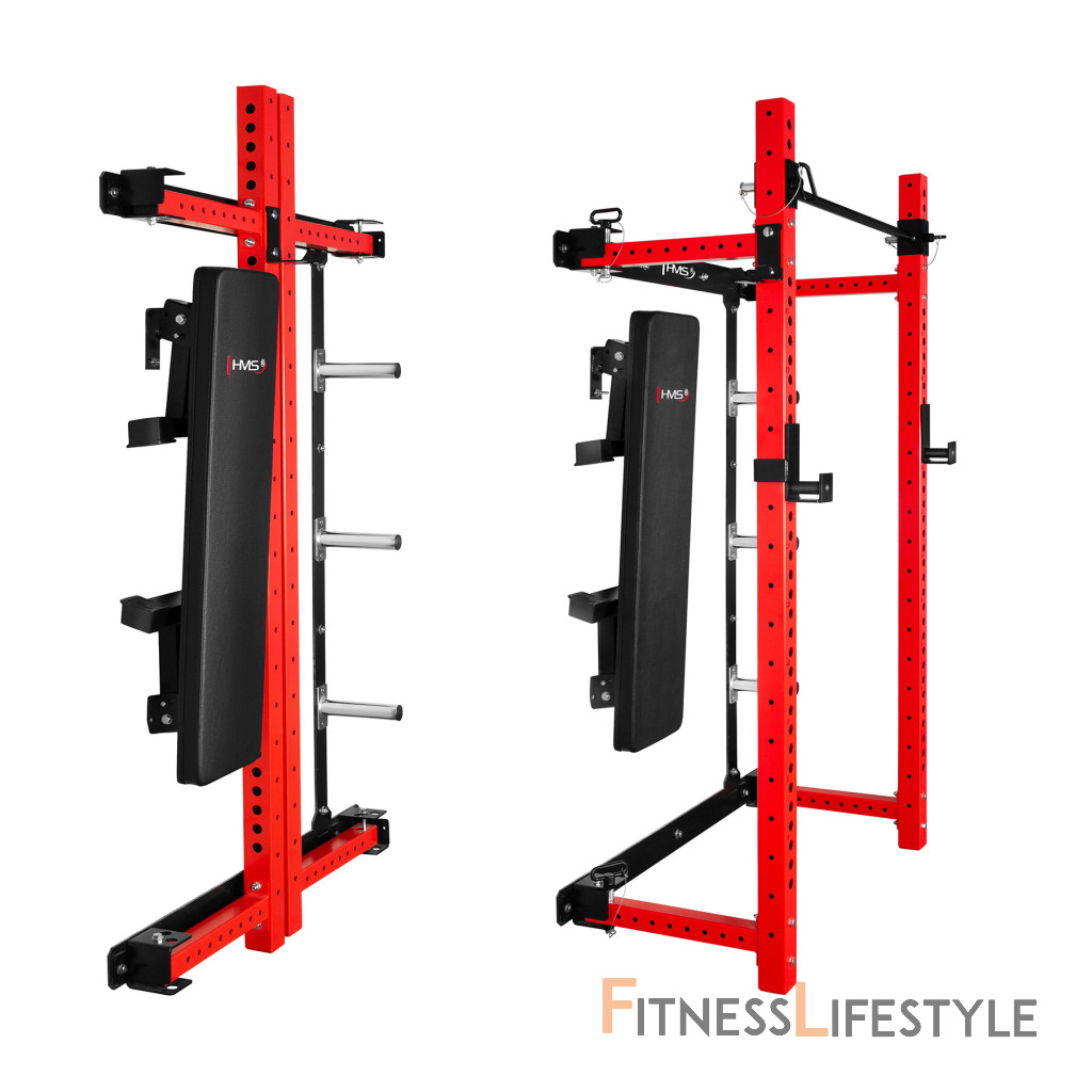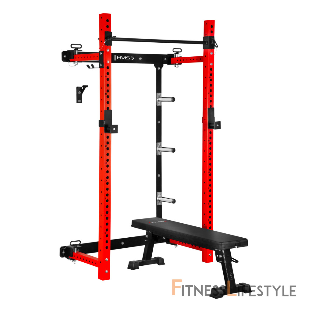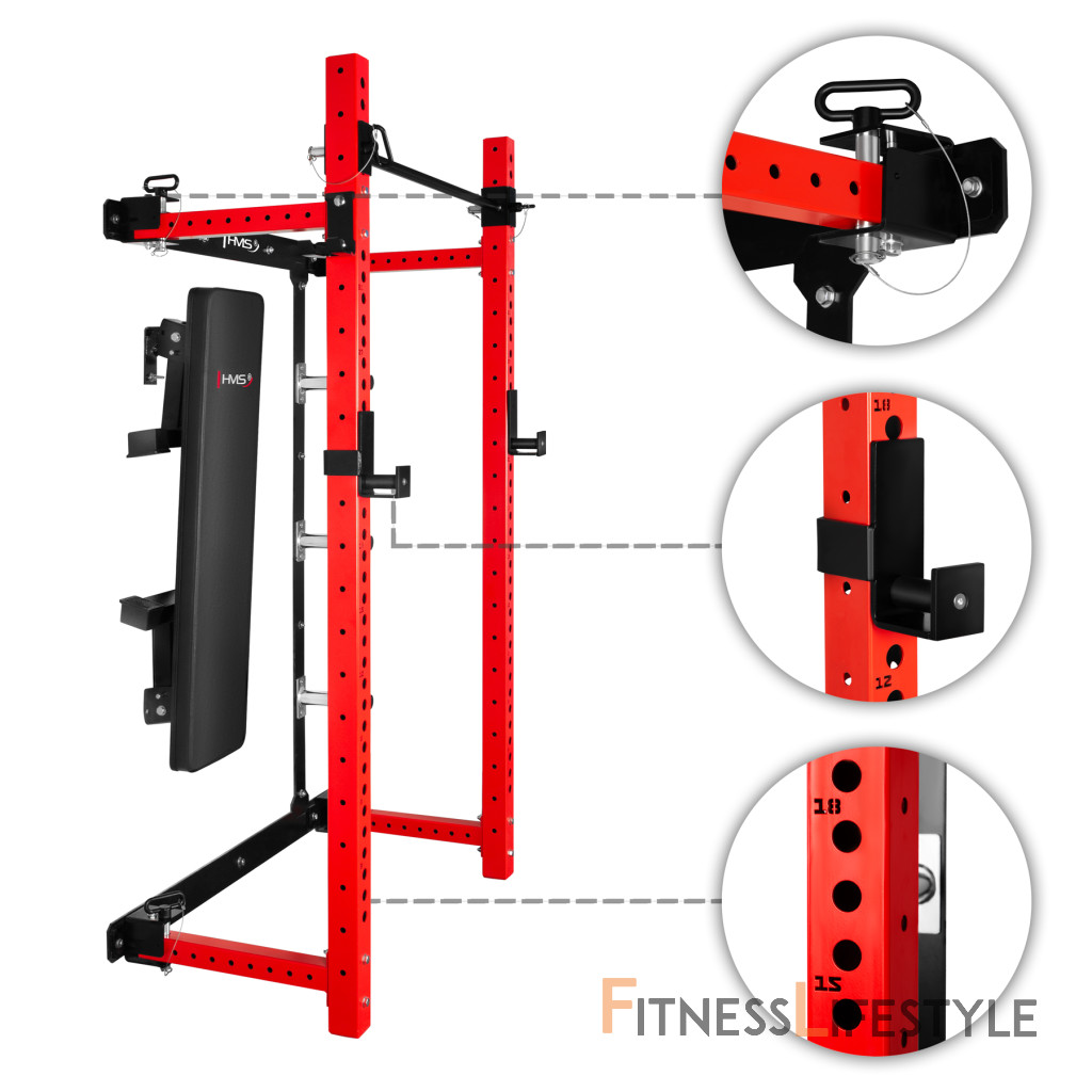 Multifunkčný skladací posilňovací stojan - Power Rack HMS KLT34 červený | Fitness Lifestyle