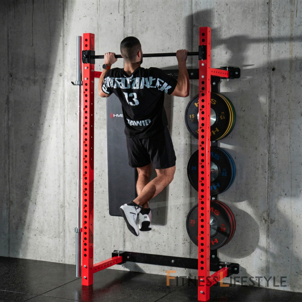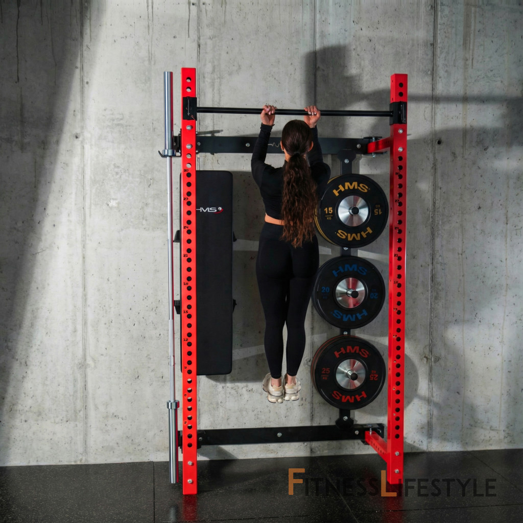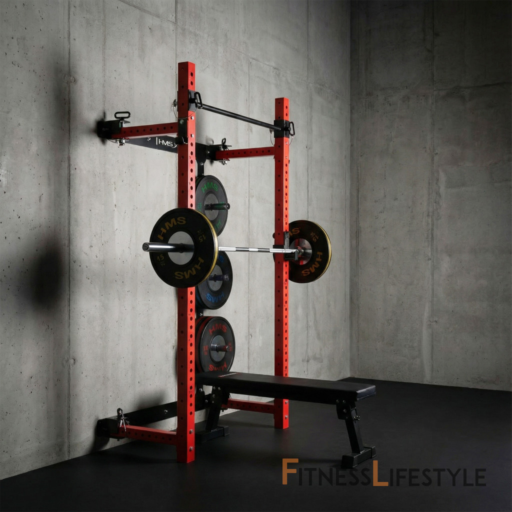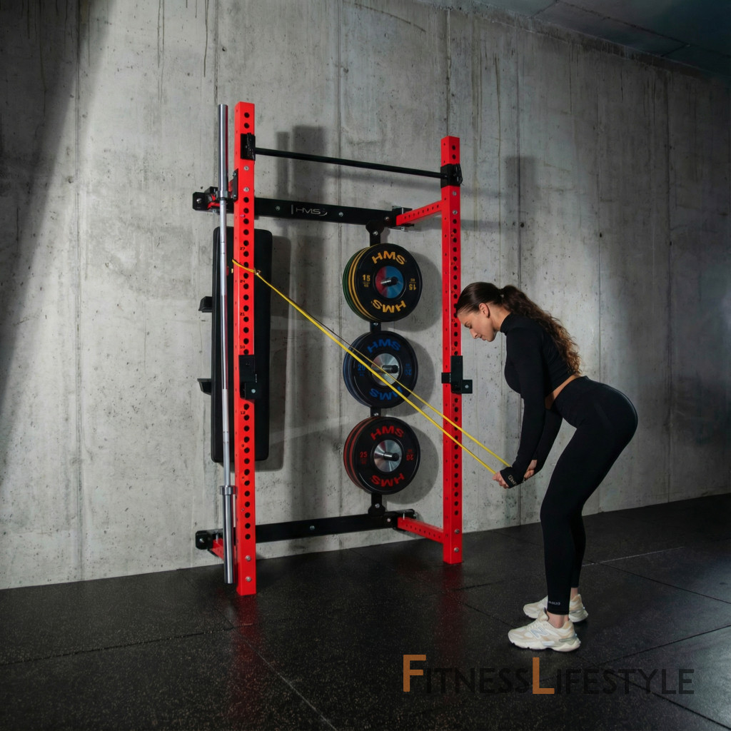 Multifunkčný skladací posilňovací stojan - Power Rack HMS KLT34 červený | Fitness Lifestyle