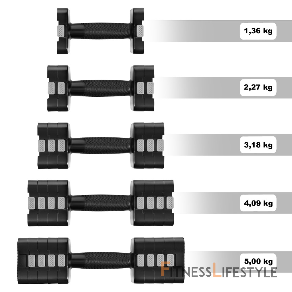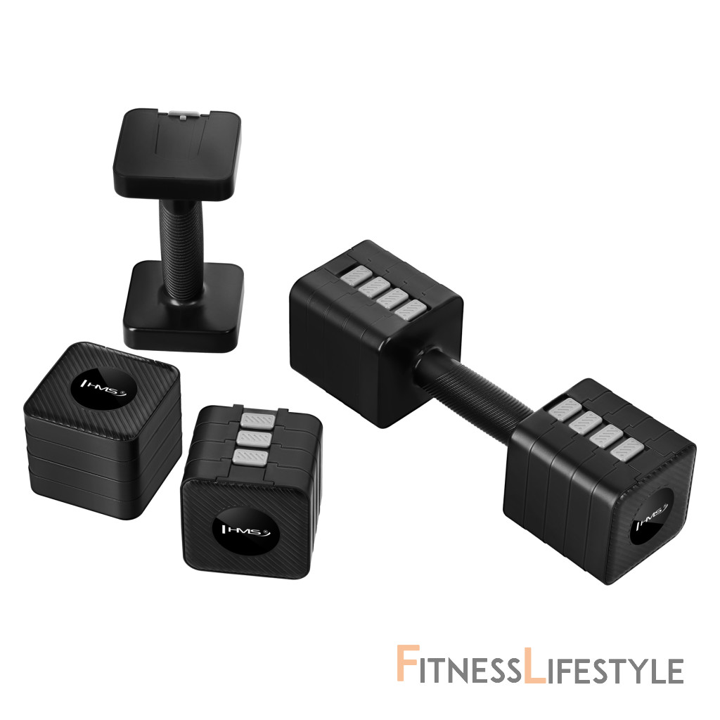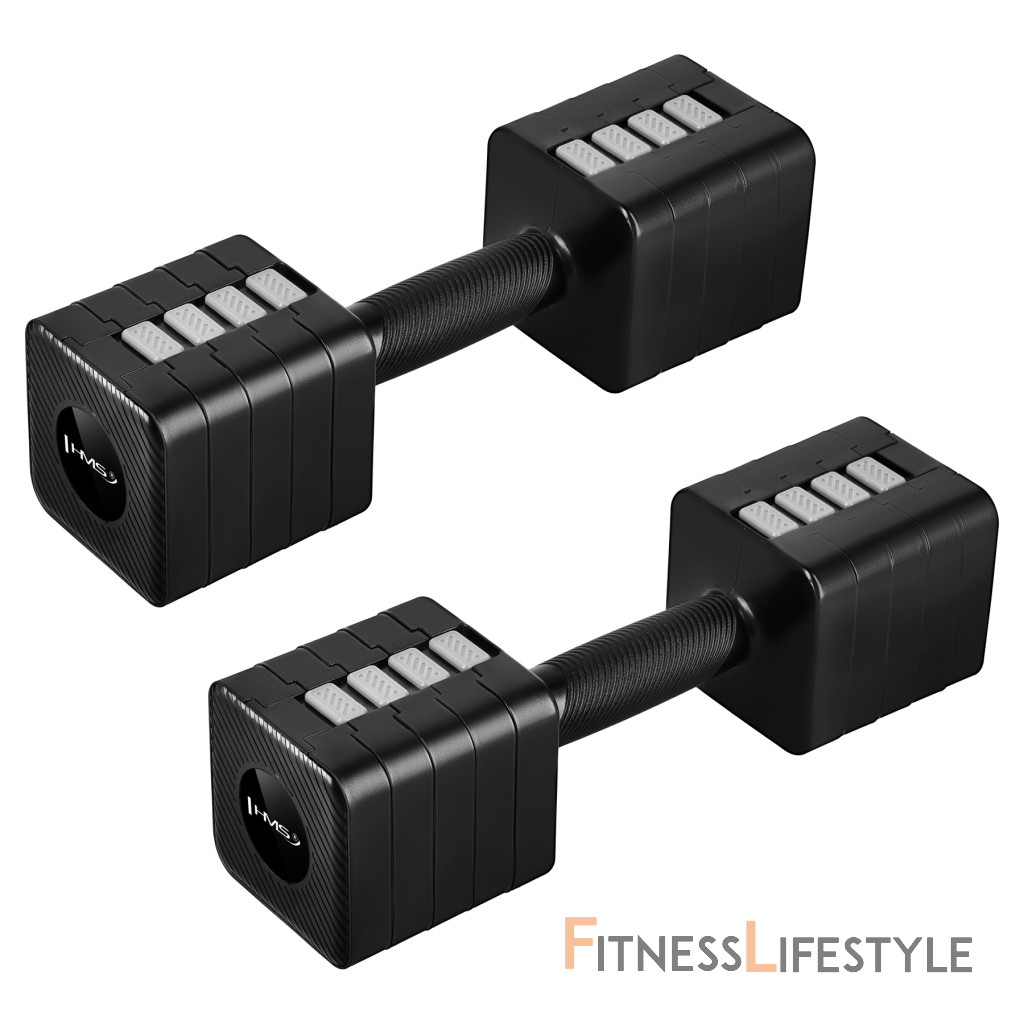 Rozhýbte svoj kondičný tréning s HL02 HMS – to sú 2 x 5 kg nastaviteľné činky s bleskurýchlymi zmenami hmotnosti za pár sekúnd, protišmykové rukoväte a stabilný štvorcový tvar. Jedna sada nahradí päť párov klasických činiek – ušetríte priestor, čas a peniaze.