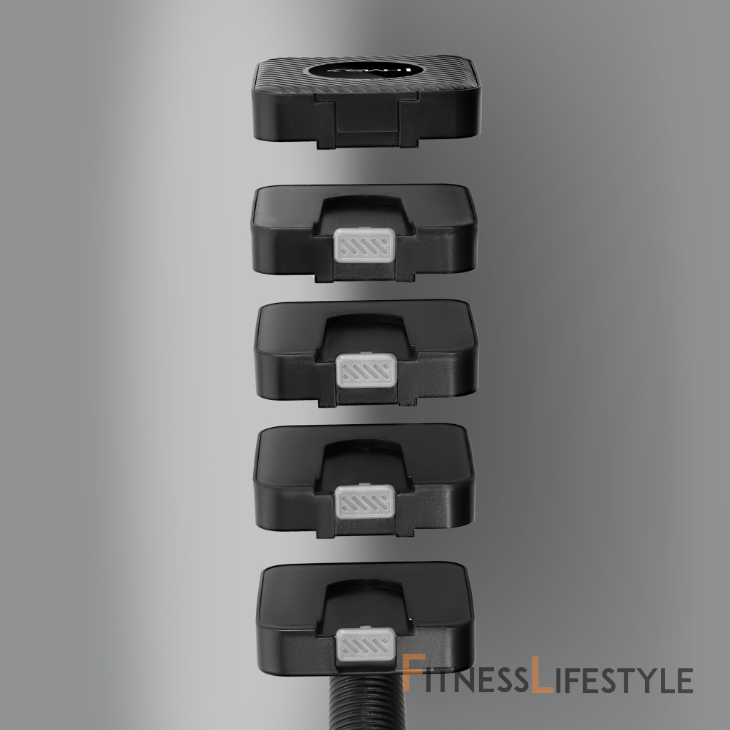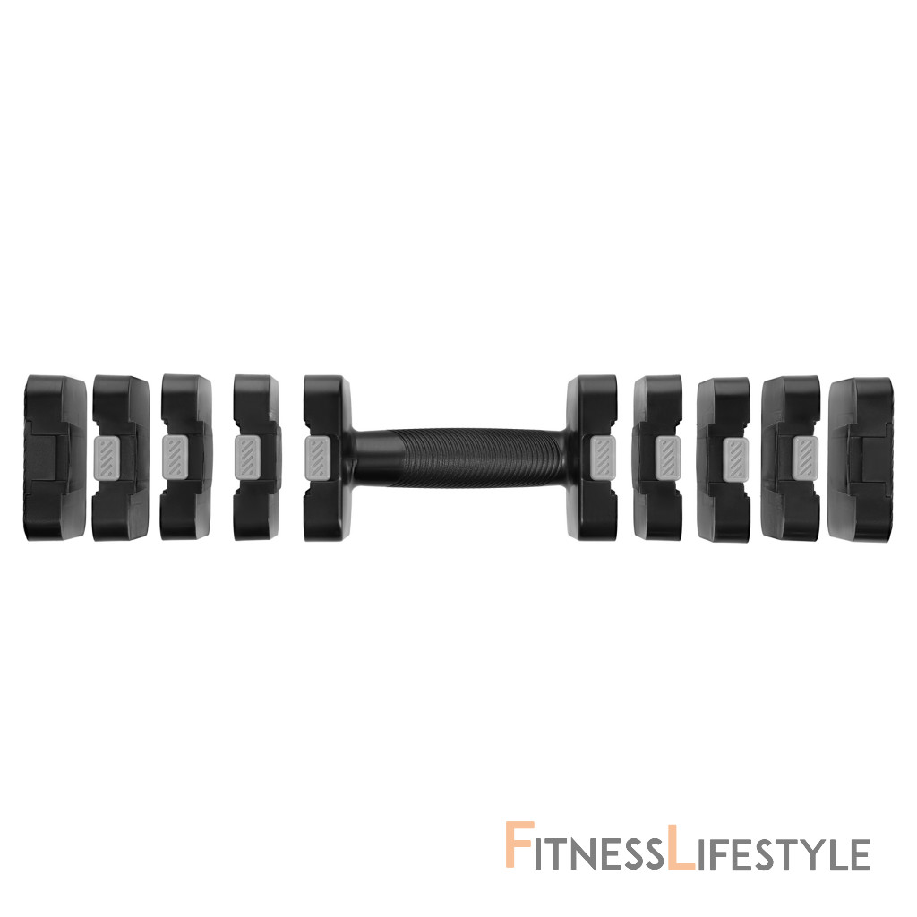Ergonomická rukoväť s protišmykovou textúrou, pevná škrupina ABS a uzamykací mechanizmus segmentov zaručujú bezpečné uchopenie a bezpečné používanie. Štvorcové závažia zvyšujú stabilitu pri ukladaní činiek a pri používaní činiek ako stojanu.