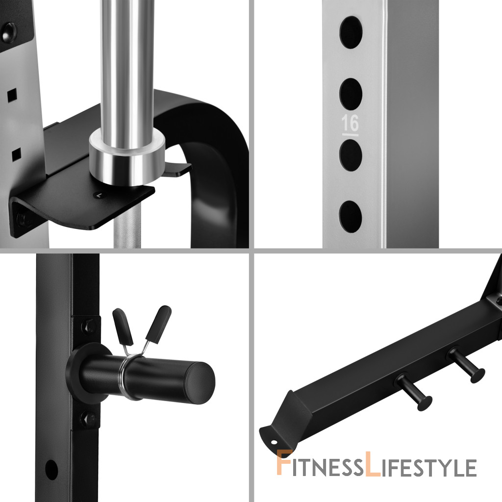Tieto prvky umožňujú plnohodnotný silový tréning bez kompromisov v oblasti bezpečnosti. Half rack je vhodný ako pre začiatočníkov, tak pre pokročilých športovcov vyžadujúcich plnú kontrolu nad cvičením.