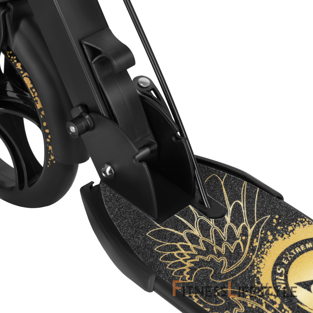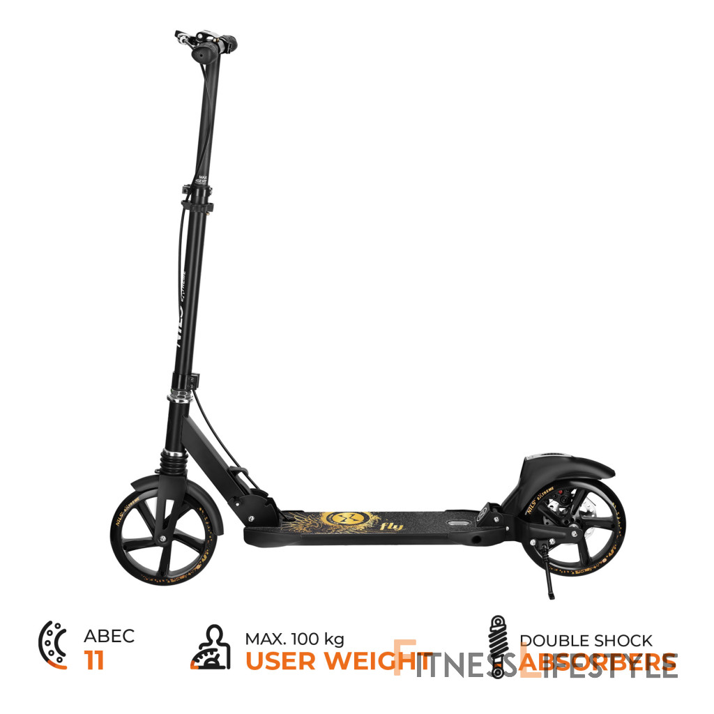 Verzia Fly zaujme elegantným prevedením a modernými grafickými detailmi, ktoré dodávajú kolobežke prémiový charakter. Dizajn je vizuálne zladený s helmami a chráničmi z rovnakého produktového radu (predávajú sa samostatne).