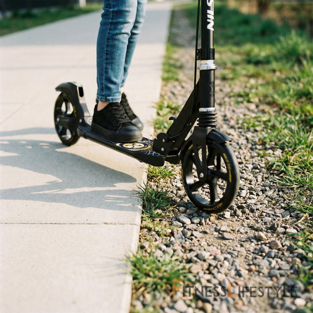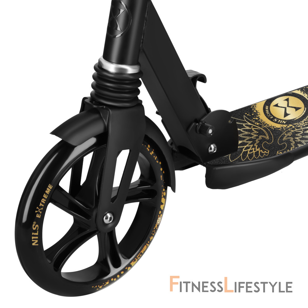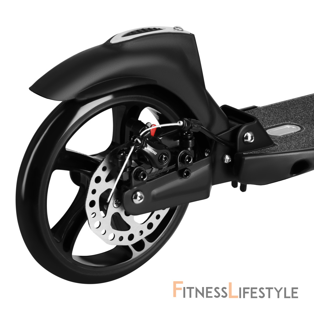Kolesá s priemerom 200 mm umožňujú hladkú jazdu na asfalte, chodníkoch aj dlažbe. Odolná konštrukcia z kombinácie ocele a hliníka zvyšuje bezpečnosť a životnosť, pričom si kolobežka zachováva optimálnu hmotnosť.