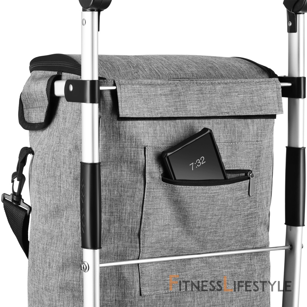 h2>Veľká kapacita a pevná konštrukciaVďaka objemu 50 litrov a maximálnemu zaťaženiu až 40 kg umožňuje vozík pohodlne prevážať väčšie nákupy alebo ťažšie balíky bez nutnosti nosiť tašky v rukách. Ľahký hliníkový rám zaisťuje stabilitu a zároveň nízku hmotnosť.