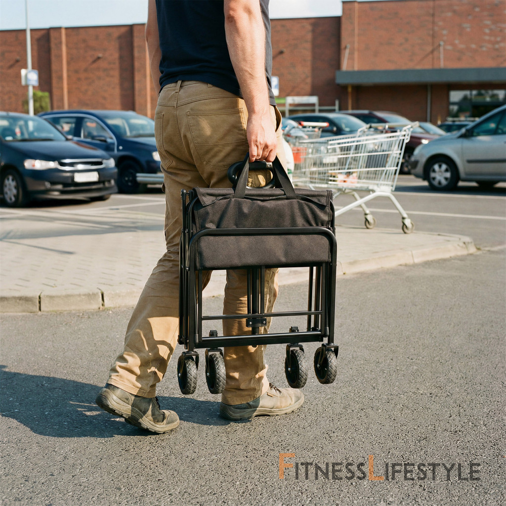Vozík ponúka objem 70 litrov, takže poskytuje dostatok priestoru pre veci, ktoré je bežne ťažké prenášať naraz – napríklad deku, tašky, vybavenie na piknik, športové doplnky alebo zásoby na celý deň. Maximálna nosnosť až 60 kg umožňuje prepravu aj ťažších predmetov bez zbytočnej námahy.