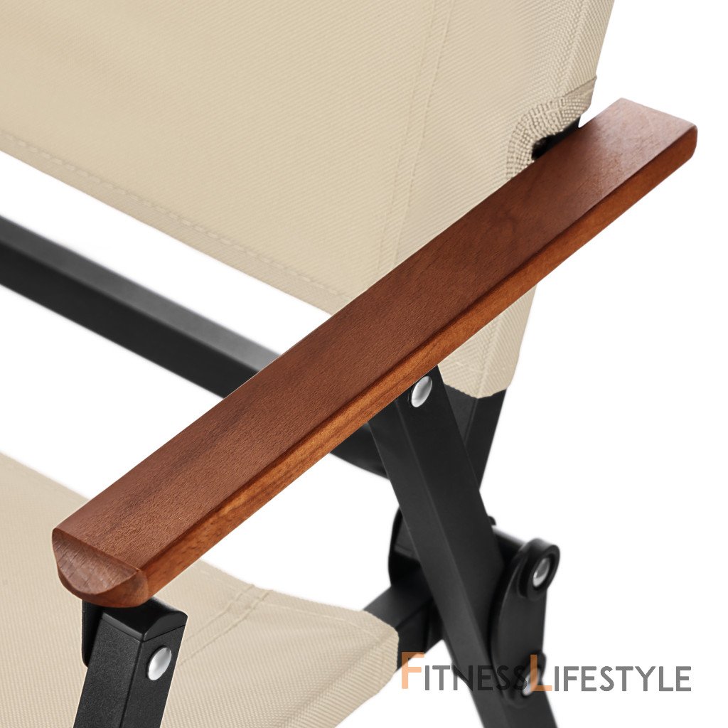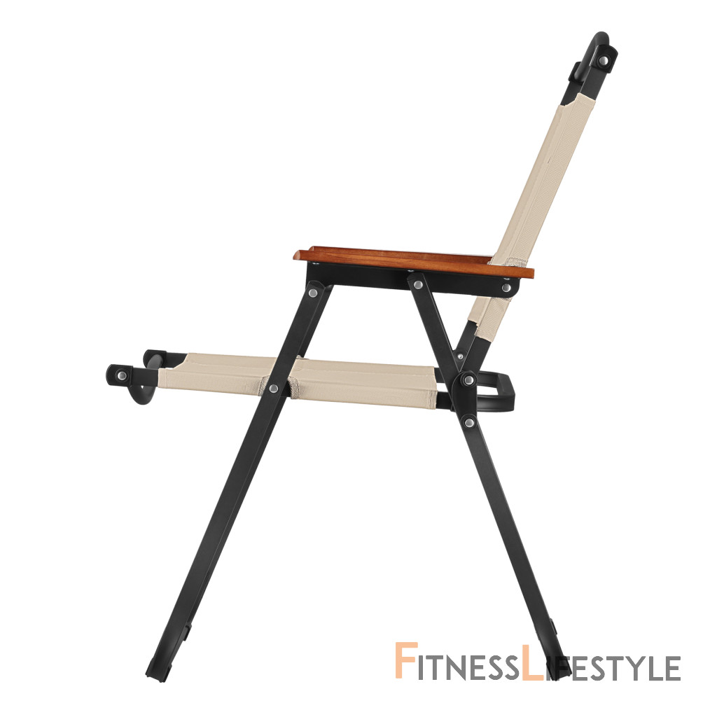 Drevené podrúčky dodávajú kreslu štýlový vzhľad a zaisťujú, že sa skvele hodia ako do záhrady, tak aj do karavanu. Konštrukcia je postavená na pevnom železnom ráme s povrchovou úpravou práškovým lakovaním, ktorá zvyšuje odolnosť proti každodennému používaniu a pomáha zachovať estetický vzhľad po dlhšiu dobu.