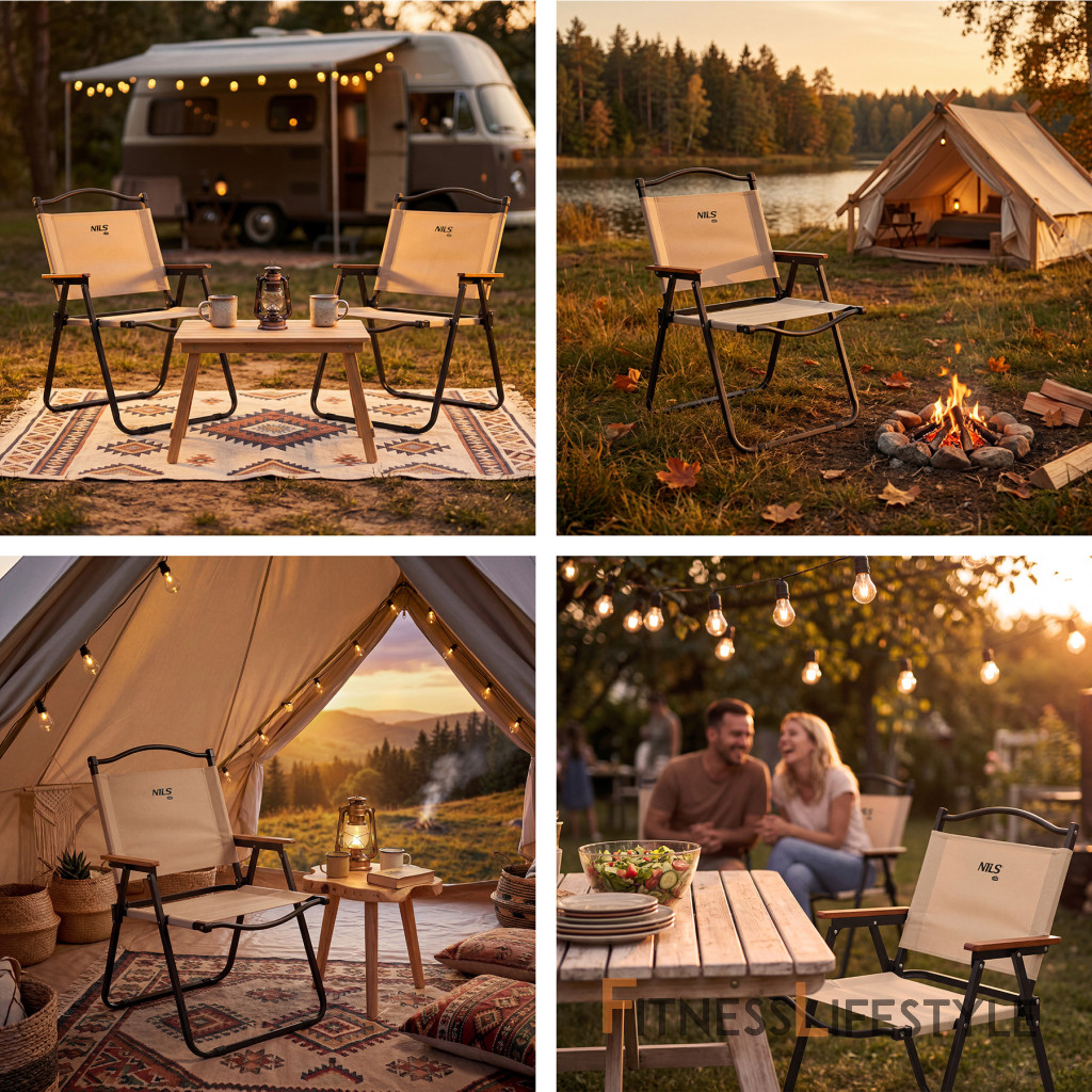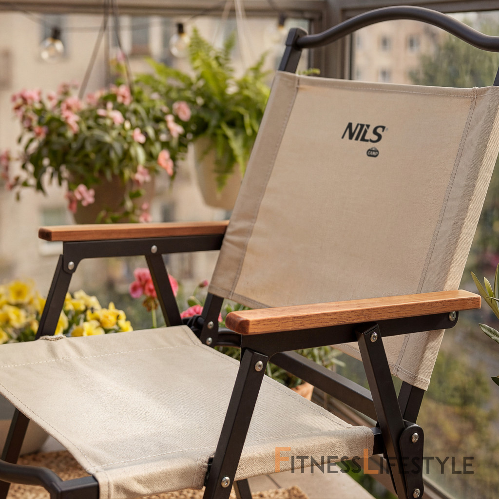 NC4307 NILS Camp je praktické skladacie kreslo, ktoré sa skvele hodí na balkón, terasu aj na výlety do prírody, kempu alebo posedenie pri grile na záhrade. Kombinuje pohodlie, elegantný vzhľad a ľahkú prenosnosť.