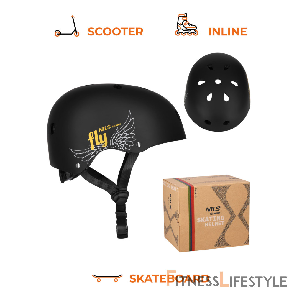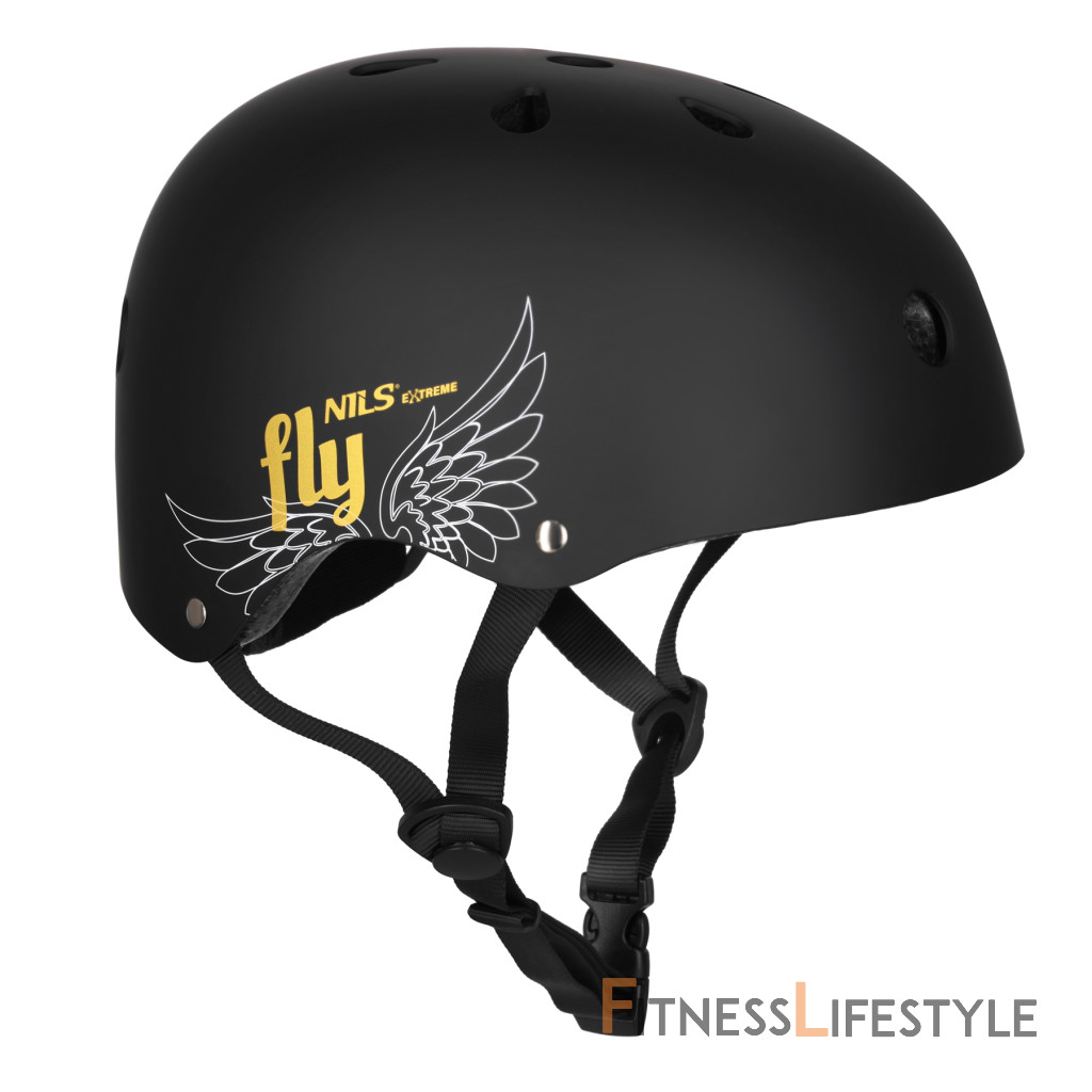 NILS Extreme MTW001 FLY je kvalitná helma typu „orech“, navrhnutá pre bezpečnú jazdu na kolieskových korčuliach, skateboarde a kolobežke. Moderný čierny matný dizajn so symbolom krídiel dodáva helme štýlový vzhľad.