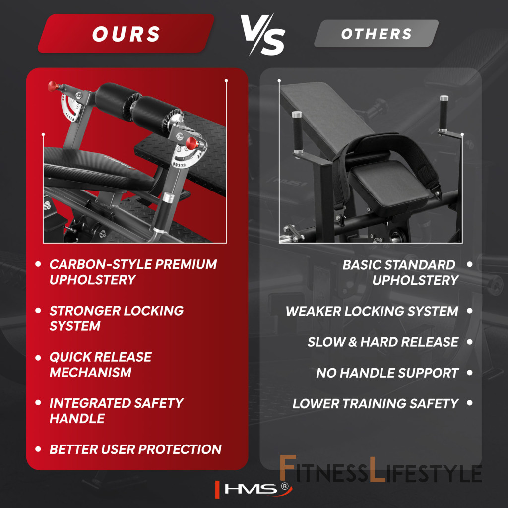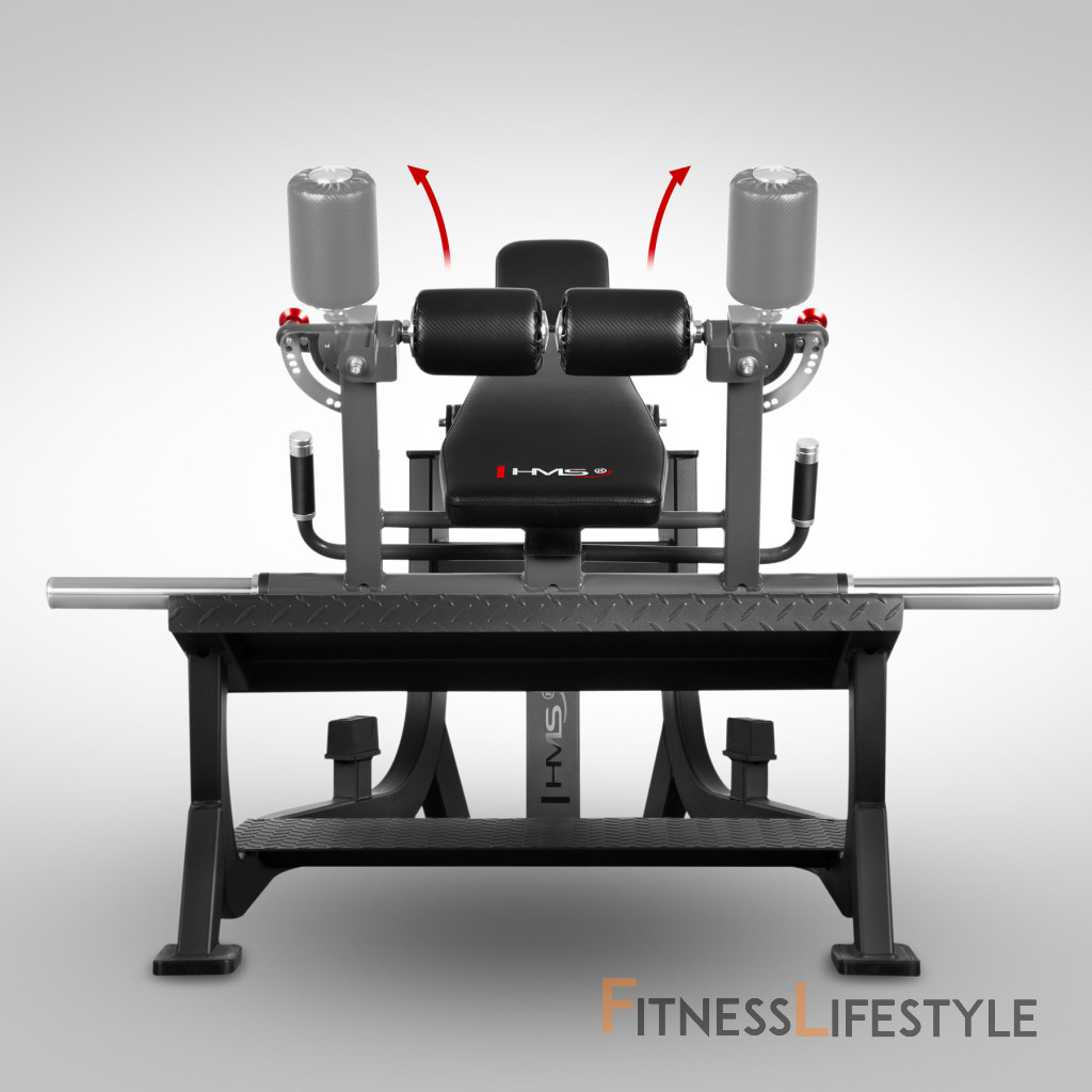 MHT8232 HMS je profesionálny stroj na hip thrust navrhnutý pre maximálne efektívny tréning sedacích svalov a bezpečné používanie. Robustná konštrukcia, maximálne zaťaženie až 500 kg, 10-stupňové nastavenie a komfortné čalúnenie s karbónovým vzhľadom z neho robia ideálne vybavenie pre komerčné posilňovne, fitness centrá i profesionálne tréningové zóny.