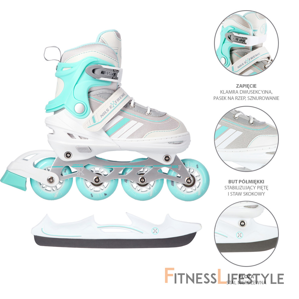 NILS Extreme NH18191 sú kolieskové korčule s vymeniteľným nožom na ľad, ktoré sú určené pre začínajúcich a stredne pokročilých používateľov.