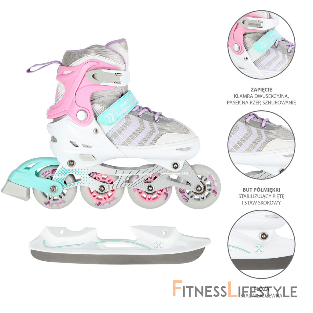 NILS Extreme NH18192 sú kolieskové korčule 4v1 s vymeniteľným nožom na ľad, ktoré sú určené pre začínajúcich a stredne pokročilých užívateľov.