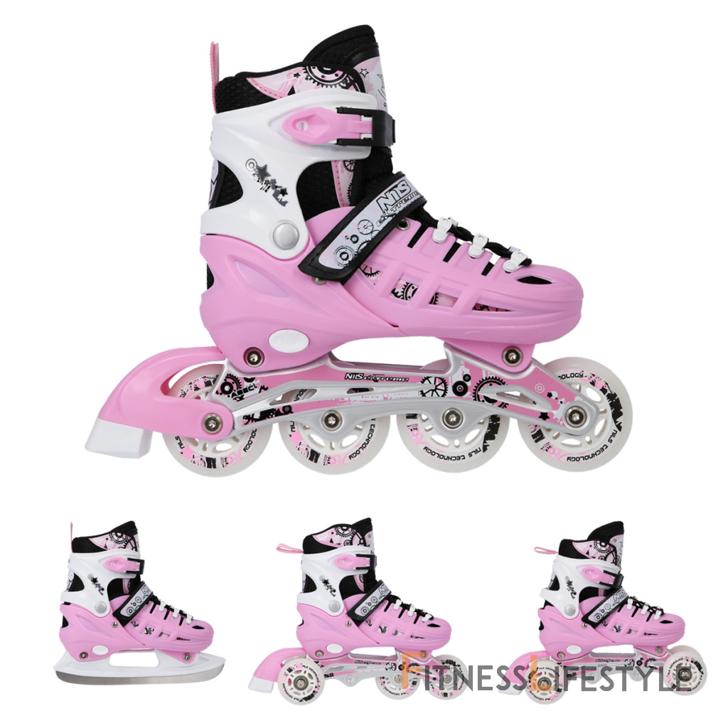 Skates nils extrémne NH10905 sú multifunkčný model, ktorý ponúka 4 možnosti zostavy podvozku-ako ľadové korčule, in-line korčule, tanečné korčule a pre najmenšiu kombináciu noža LED 2+1+1+. V dôsledku toho je to univerzálne riešenie, ktoré sa prispôsobuje veku a zručnostiam používateľa a poskytne jazdu počas celého roka.