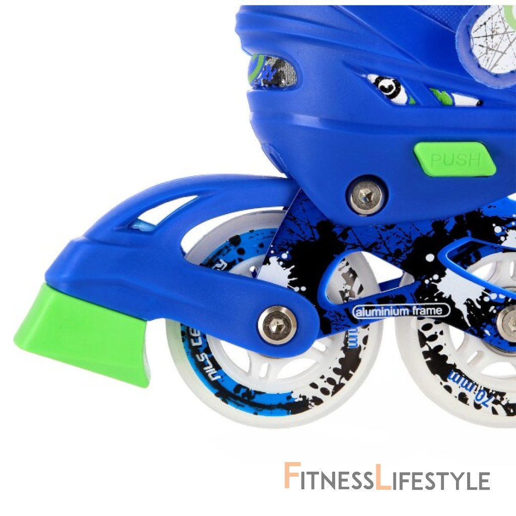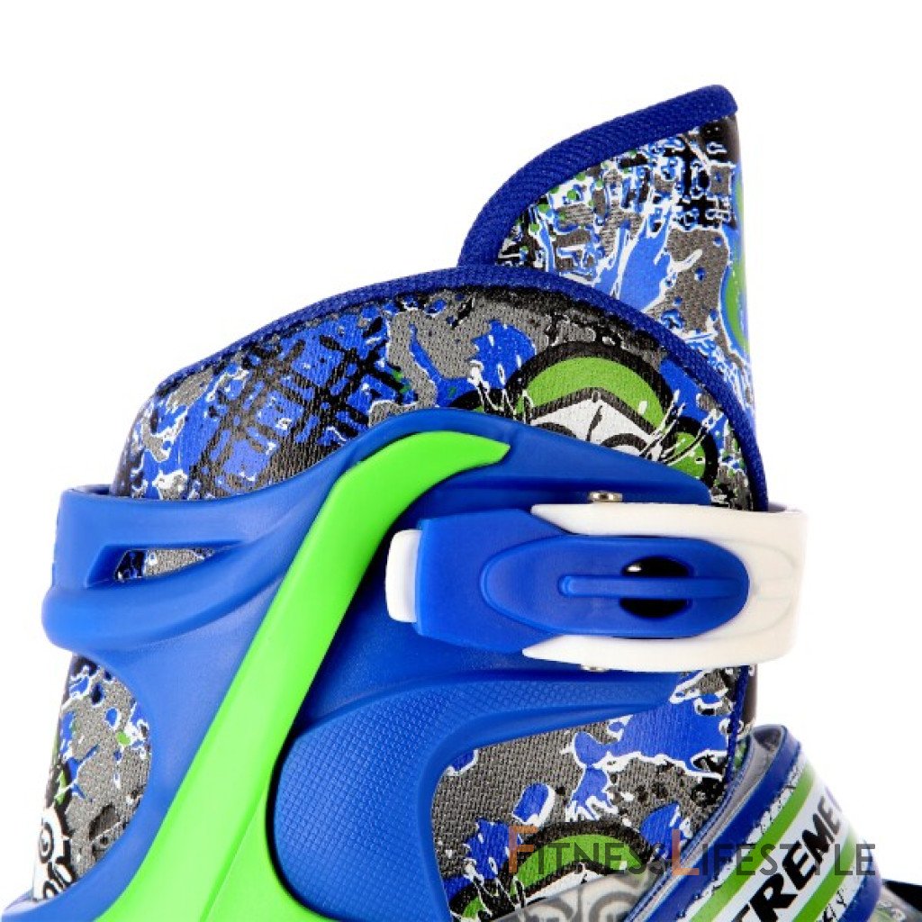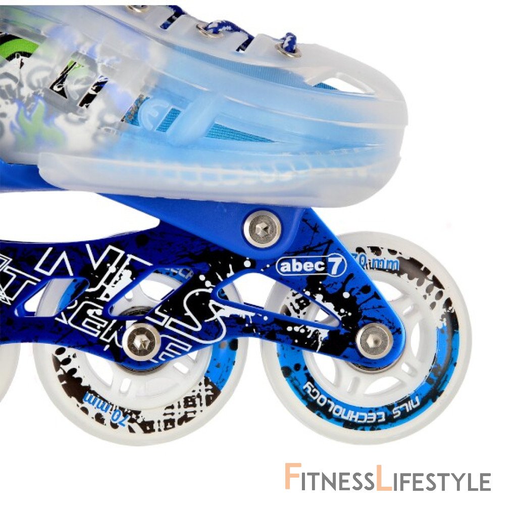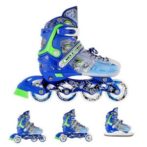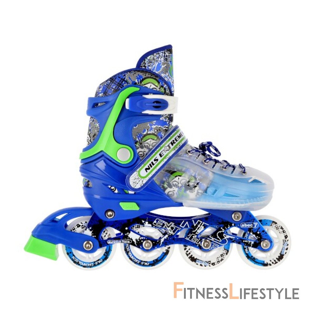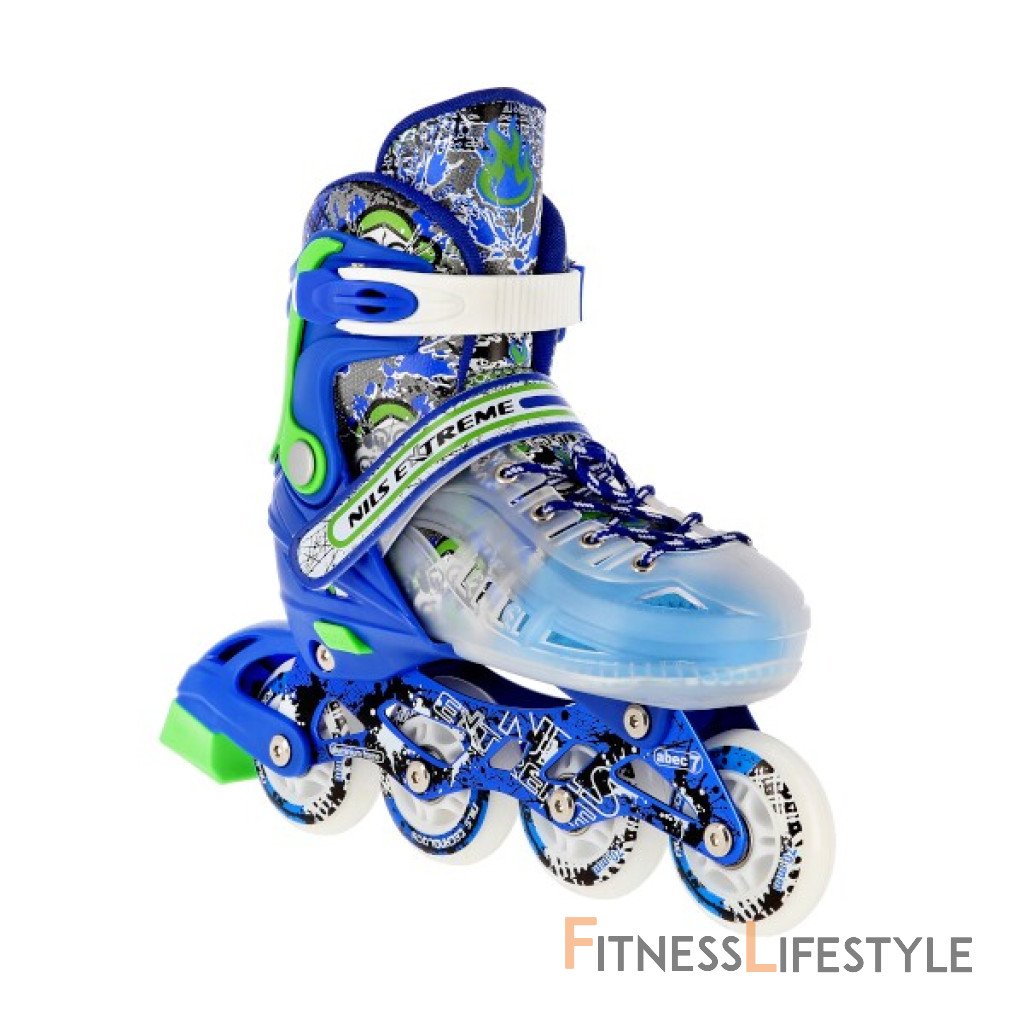 Rastúce kolieskové korčule NILS EXTREME NH18122 s variabilným zostavením podvozku a vymeniteľným nožom na ľad sú vhodné k rekreačnej jazde. Výhodou je zmena veľkosti stlačením jediného tlačidla. Priesvitná, predná časť tvrdé topánky dáva vyniknúť modernému dizajnu vnútornej vložky. Zapínanie je riešené klasickou troj-kombináciou (šnurovanie, opasok na suchý zips, dvousekční pracka). Kolieska sú osadené ložiskami ABEC 7 pre rýchlu jazdu, korčule sú tak vhodné pre zdatnejších jazdcov. Variabilné podvozok umožnuje zostavenie ako In-ine, Quad (tanečné), ľadový, alebo sa zadnými kolieskami vedľa seba pre začiatočníkov, tieto variácie zaručujú využitie korčulí po celý rok.