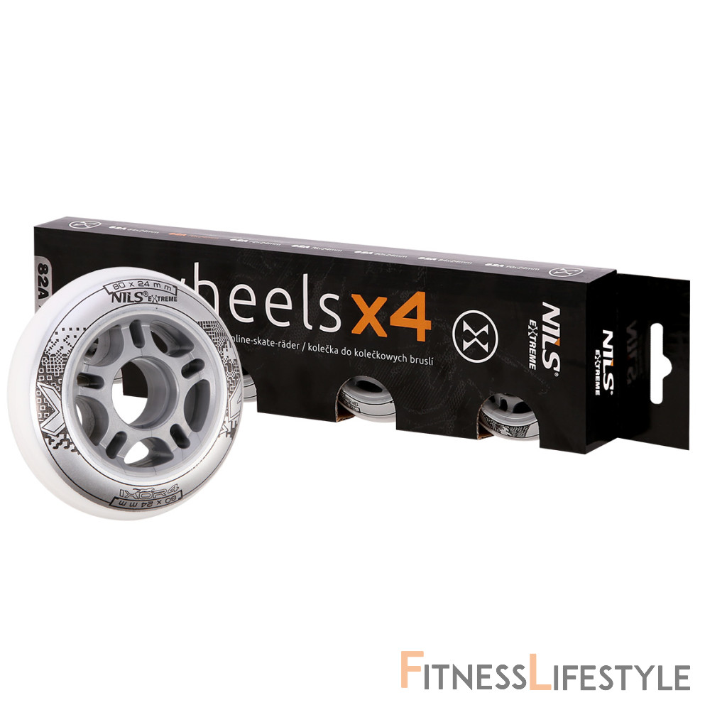 Náhradné kolieska pre fitness kolieskové korčule. Určené pre rekreačnú jazdu, charakterizovali dva základné parametre: priemer a stupeň tvrdosti. Priemer kolieska rovný 80 mm zaisťuje veľmi vysokú rýchlosť a slušnú ovládateľnosť. Tvrdosť 82A poskytuje vynikajúcu prispôsobenie každému terénu.