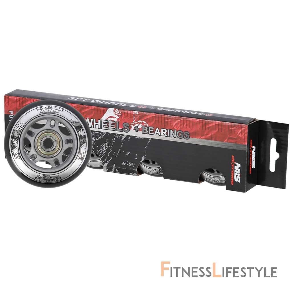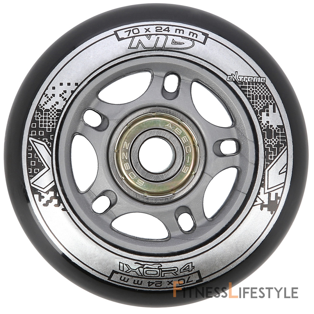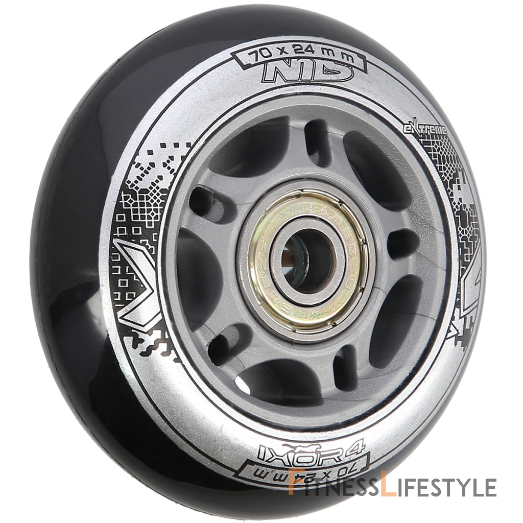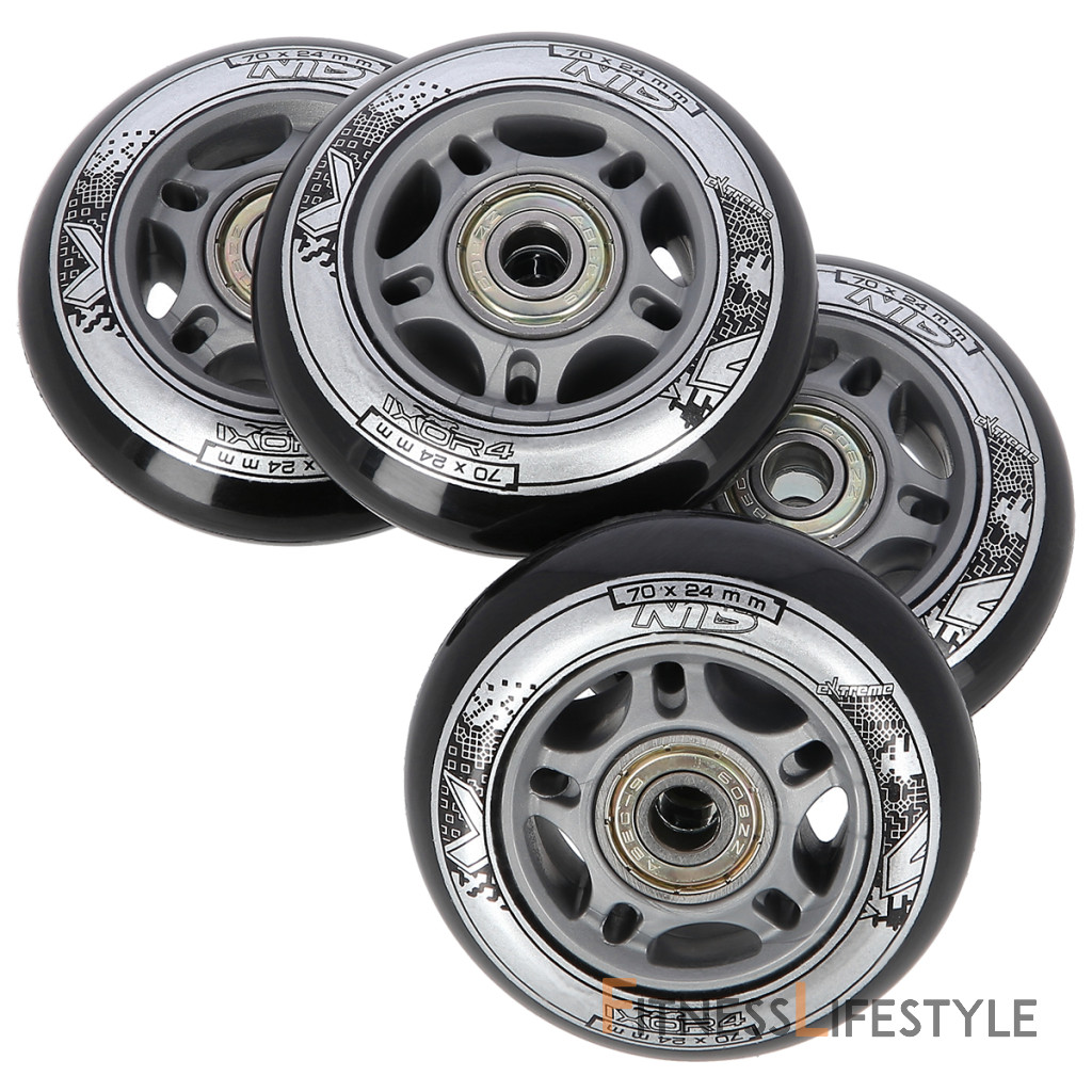 Náhradná sada koliesok veľkosti 70x24 mm čiernej farby a tvrdosťou 82 A s ložiskami ABEC 9.