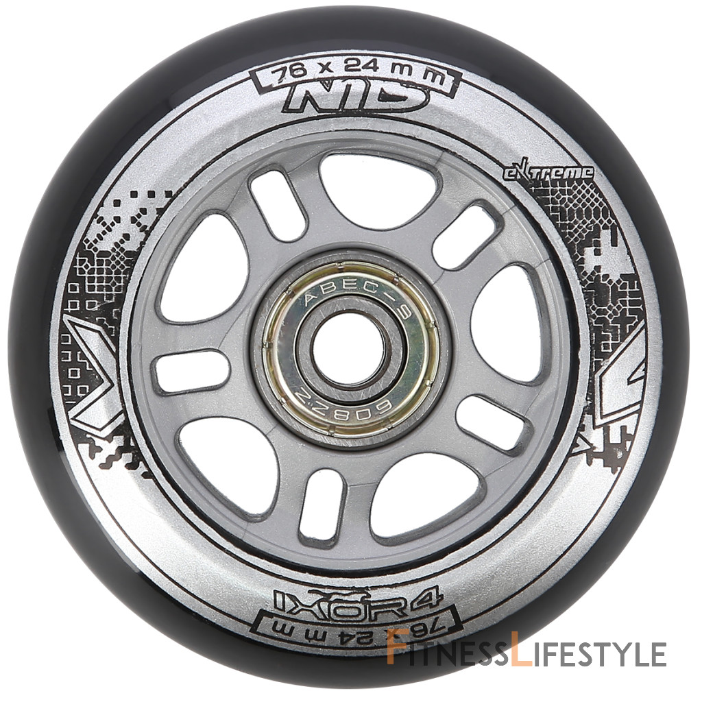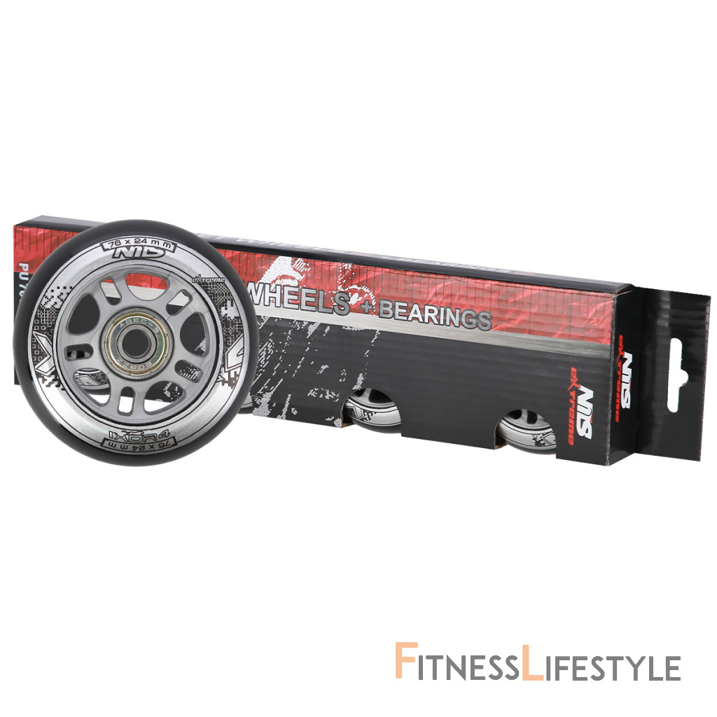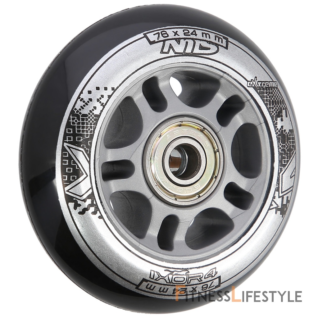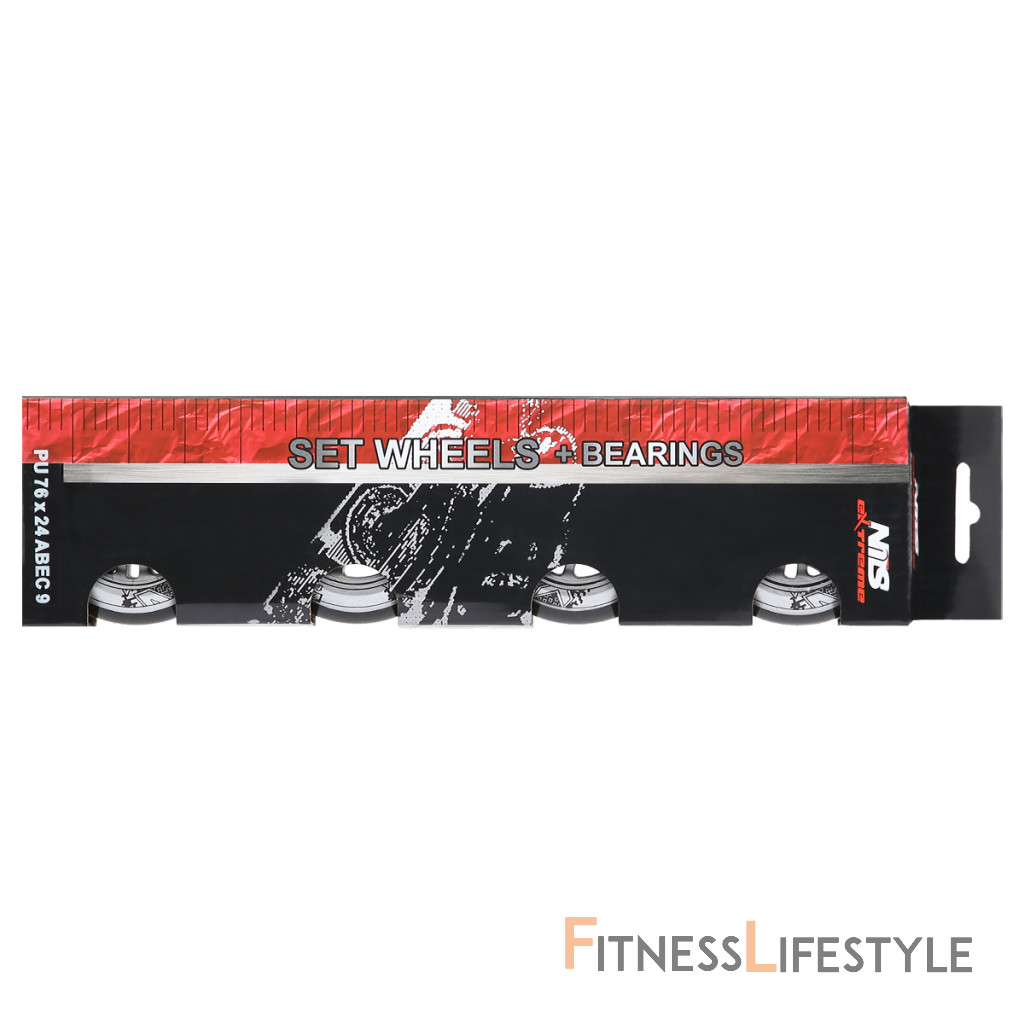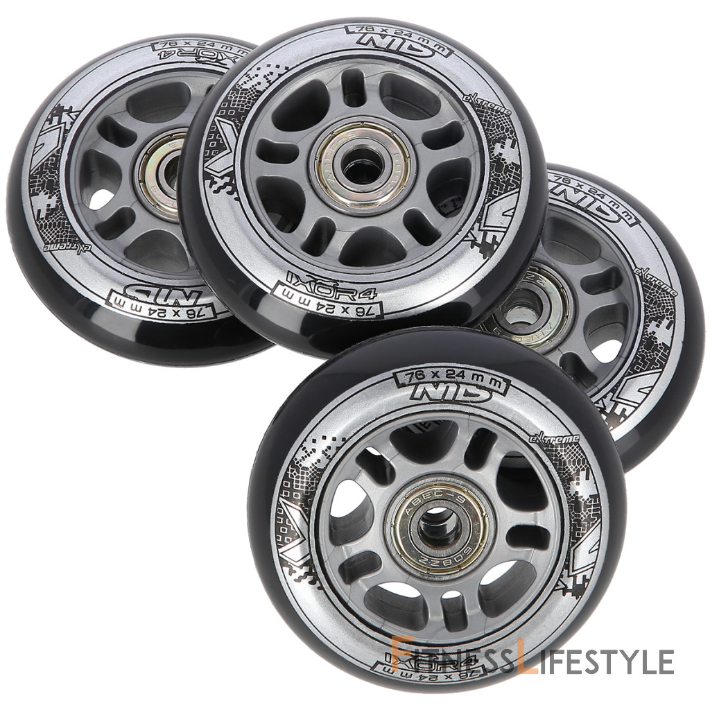 Náhradná sada koliesok veľkosti 76x24 mm čiernej farby a tvrdosťou 82 A s ložiskami ABEC 9.