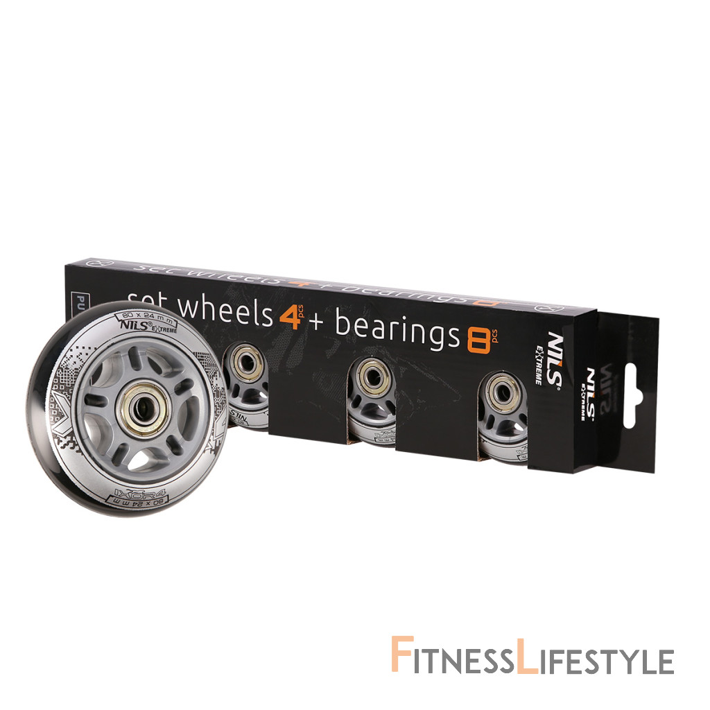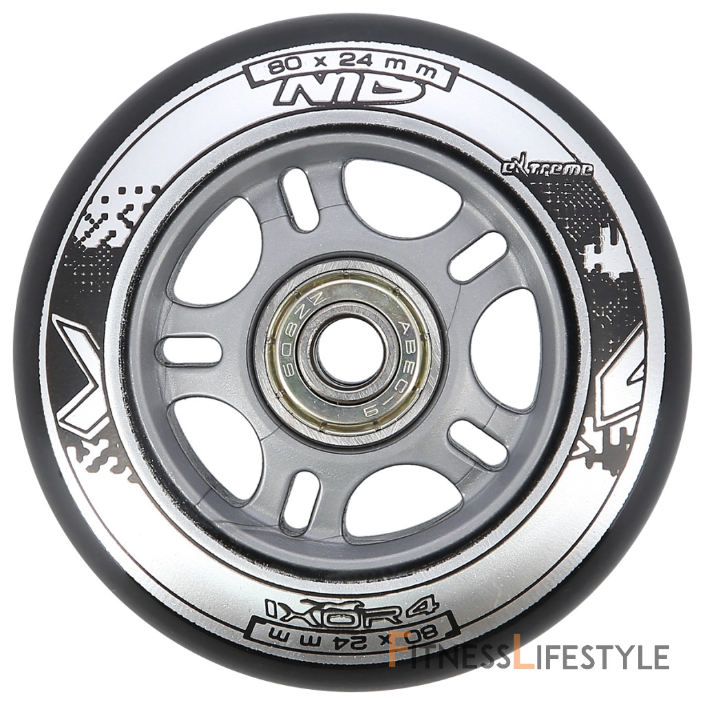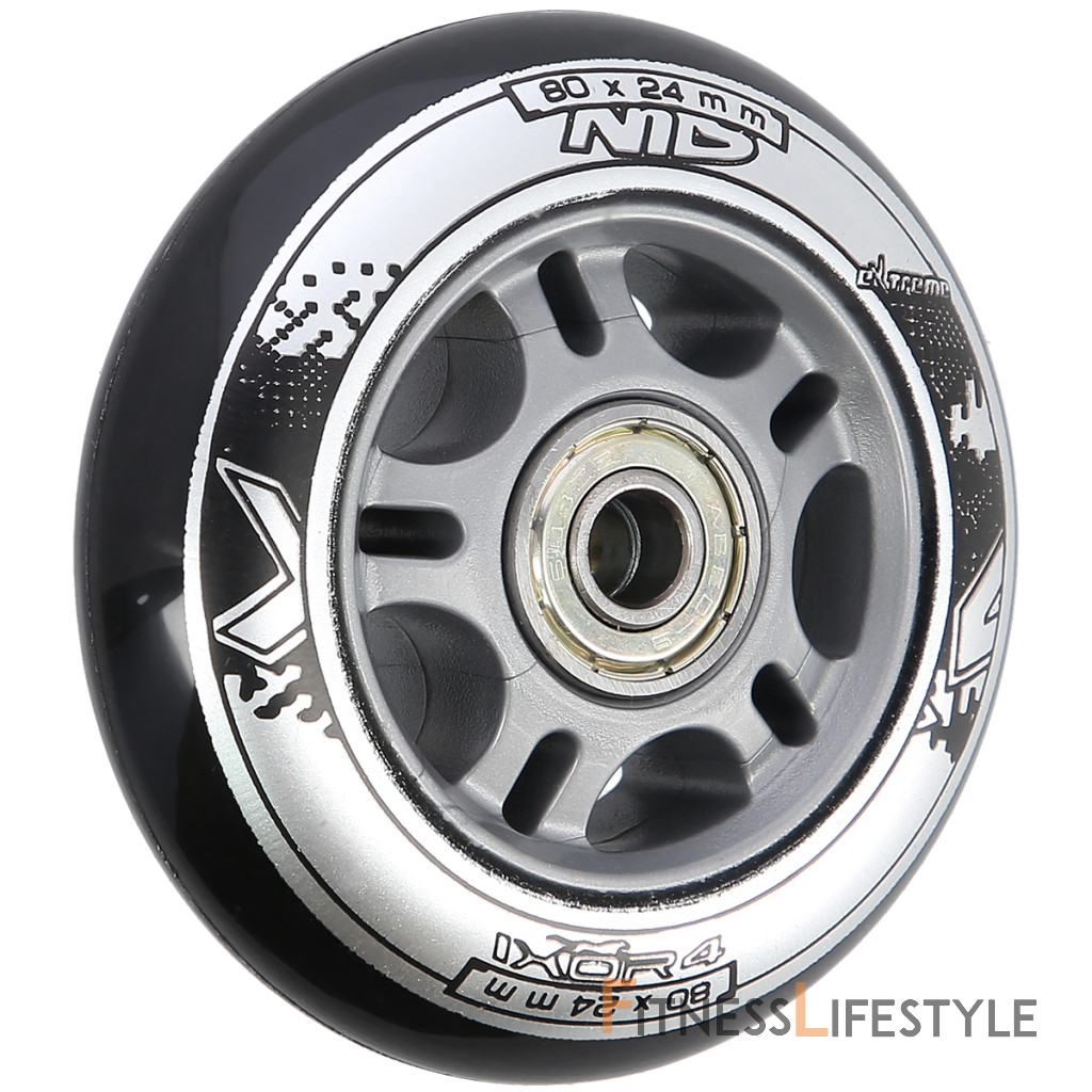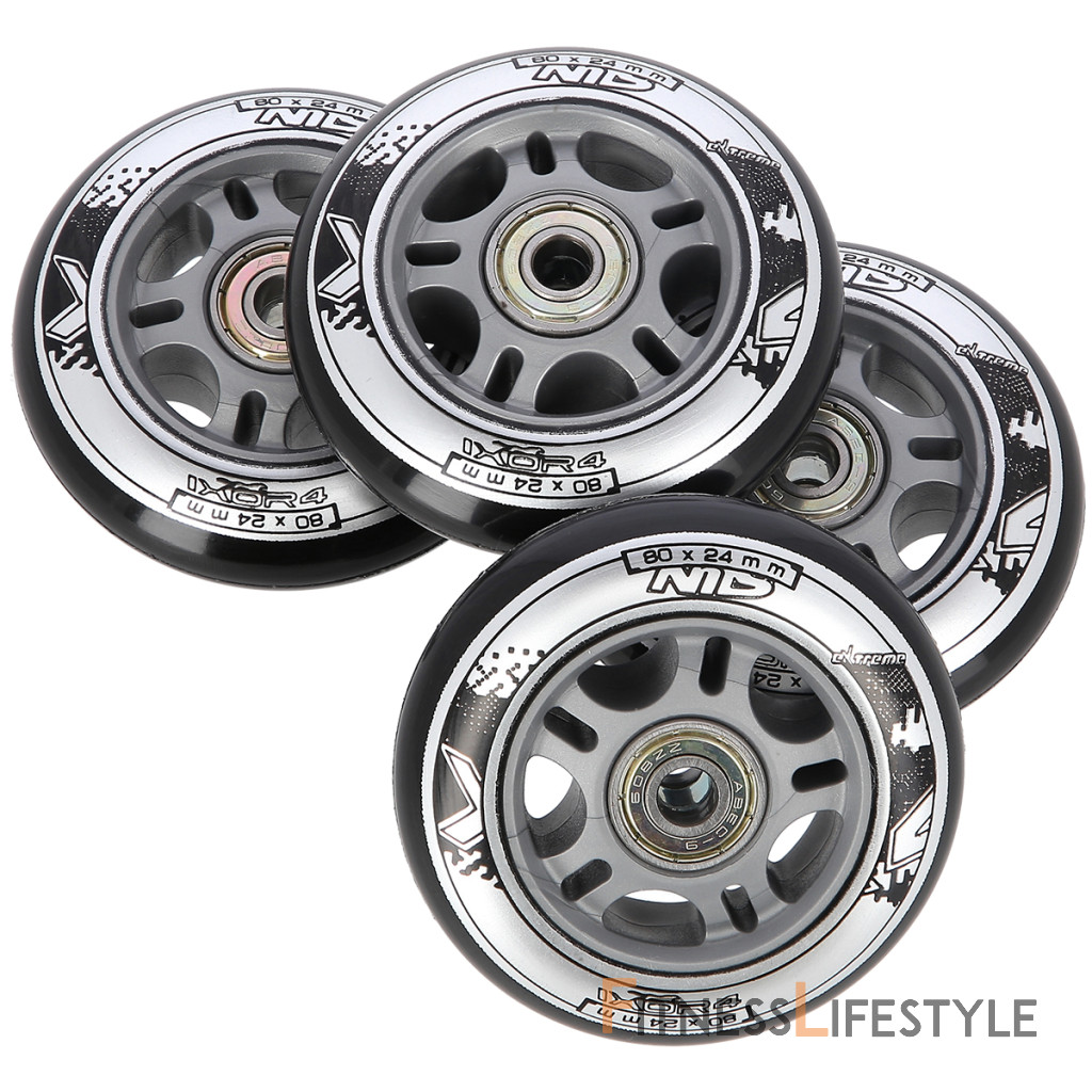 Náhradná sada koliesok veľkosti 80x24 mm čiernej farby a tvrdosťou 82 A s ložiskami ABEC 9.