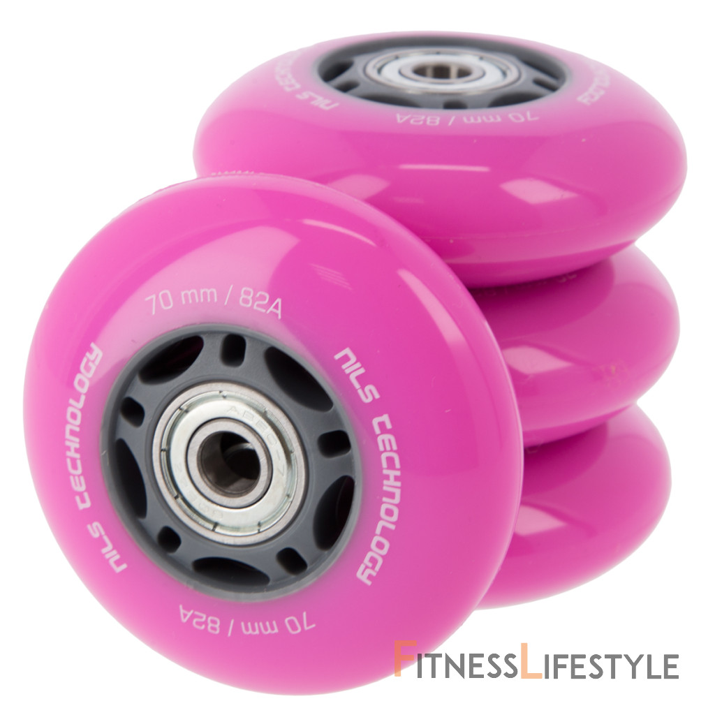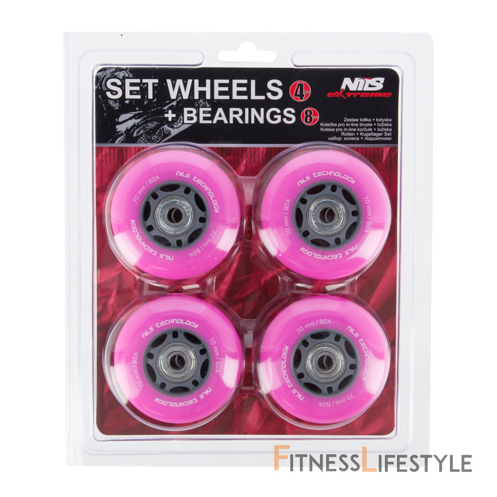 Náhradné PU kolieska s ložiskami NILS EXTREME pre kolieskové korčule. Tvrodst 82A zaručuje prispôsobenie každému povrchu. Ložiská ABEC 7 zaručujú dlhú životnosť. Veľkosť koliesok sa volí podľa štýlu jazdy. Menšie kolieska sú pomalšie, ale umožňujú lepšiu manévrovateľnosť. Väčšie kolieska sú rýchlejšie, ale ťažšie zatáča.