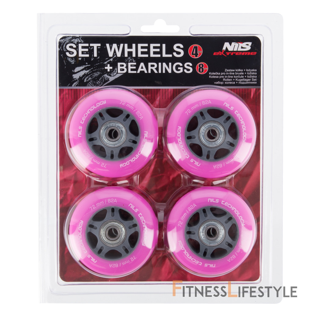Náhradné PU kolieska s ložiskami NILS EXTREME pre kolieskové korčule. Tvrodst 82A zaručuje prispôsobenie každému povrchu. Ložiská ABEC 7 zaručujú dlhú životnosť. Veľkosť koliesok sa volí podľa štýlu jazdy. Menšie kolieska sú pomalšie, ale umožňujú lepšiu manévrovateľnosť. Väčšie kolieska sú rýchlejšie, ale ťažšie zatáča.
