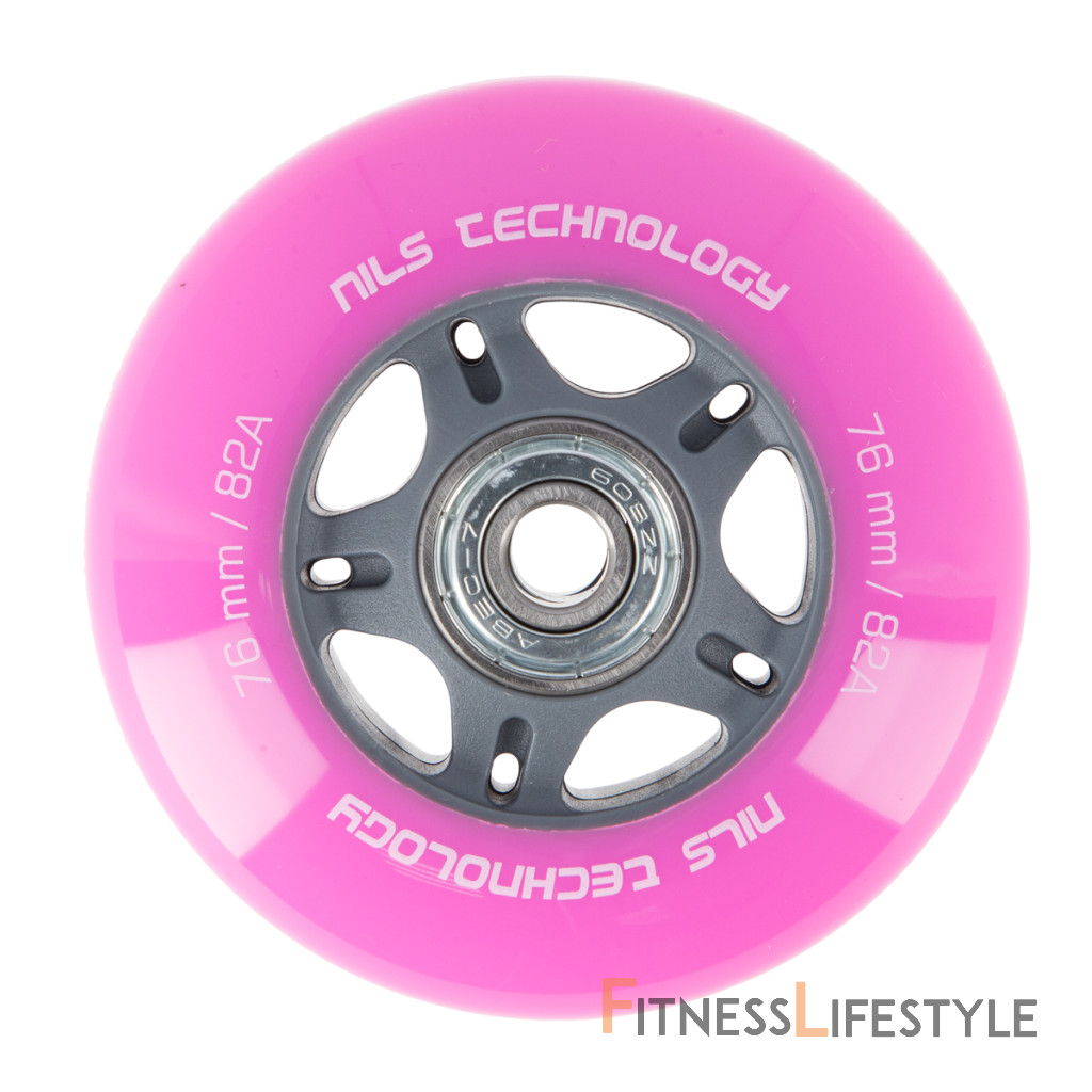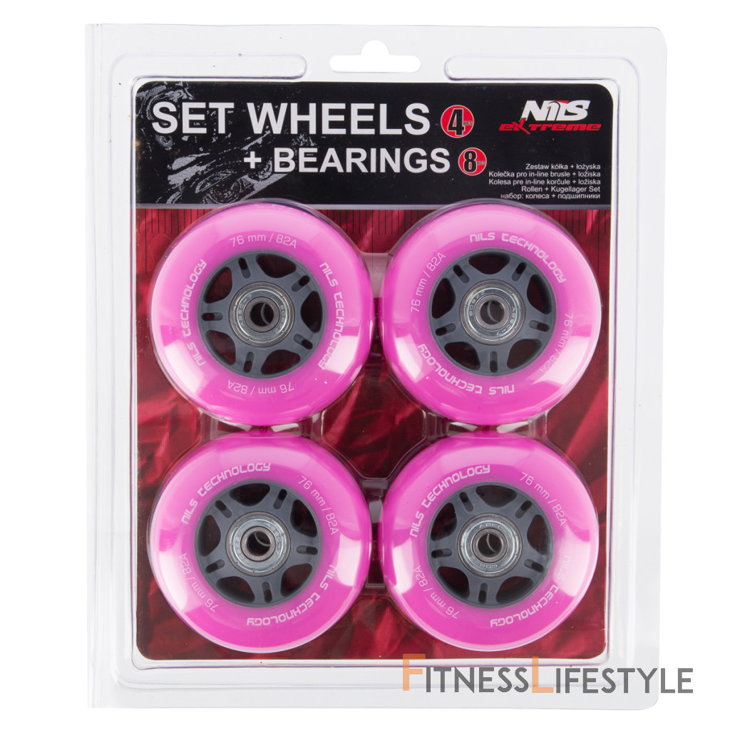 Náhradné PU kolieska s ložiskami NILS EXTREME pre kolieskové korčule. Tvrodst 82A zaručuje prispôsobenie každému povrchu. Ložiská ABEC 7 zaručujú dlhú životnosť. Veľkosť koliesok sa volí podľa štýlu jazdy. Menšie kolieska sú pomalšie, ale umožňujú lepšiu manévrovateľnosť. Väčšie kolieska sú rýchlejšie, ale ťažšie zatáča.