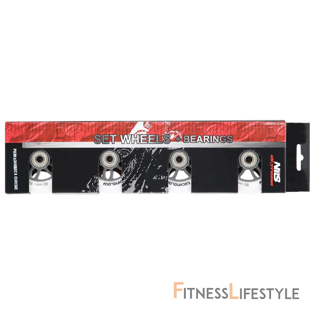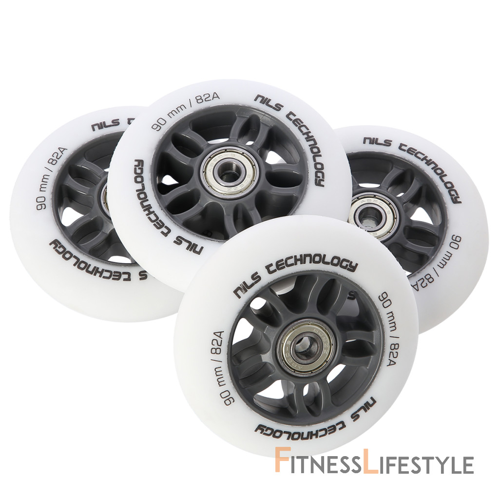 Matná kolieska NILS Extreme PU 90x24 82A s ložiskami ABEC 9, biela, 4 ks | Fitness Lifestyle