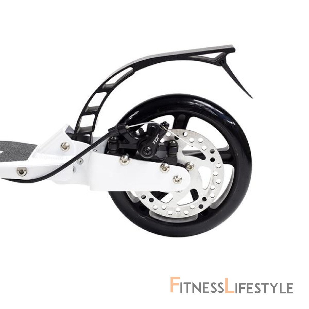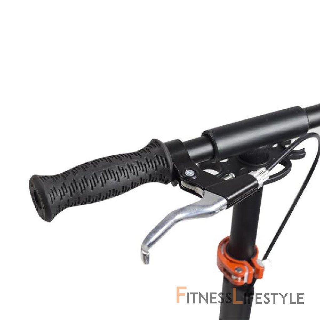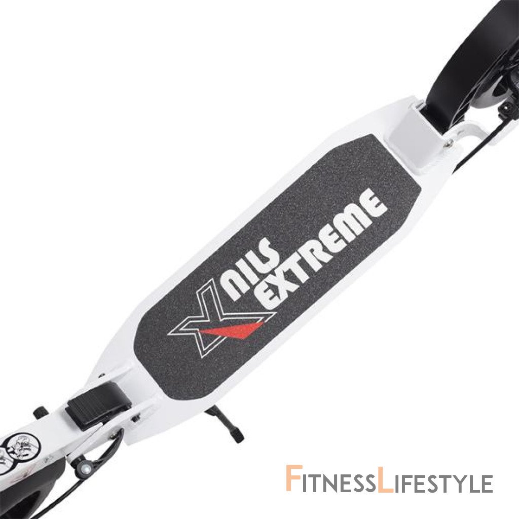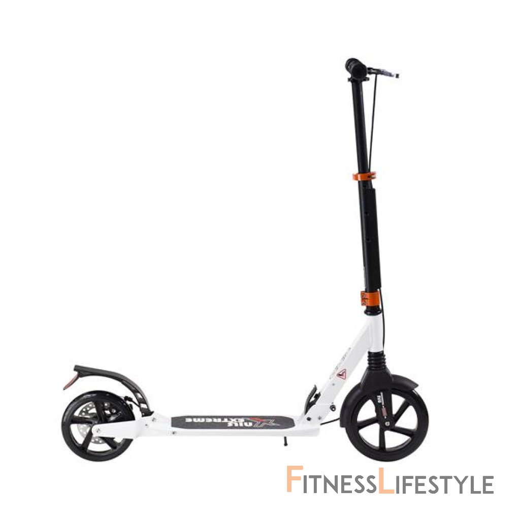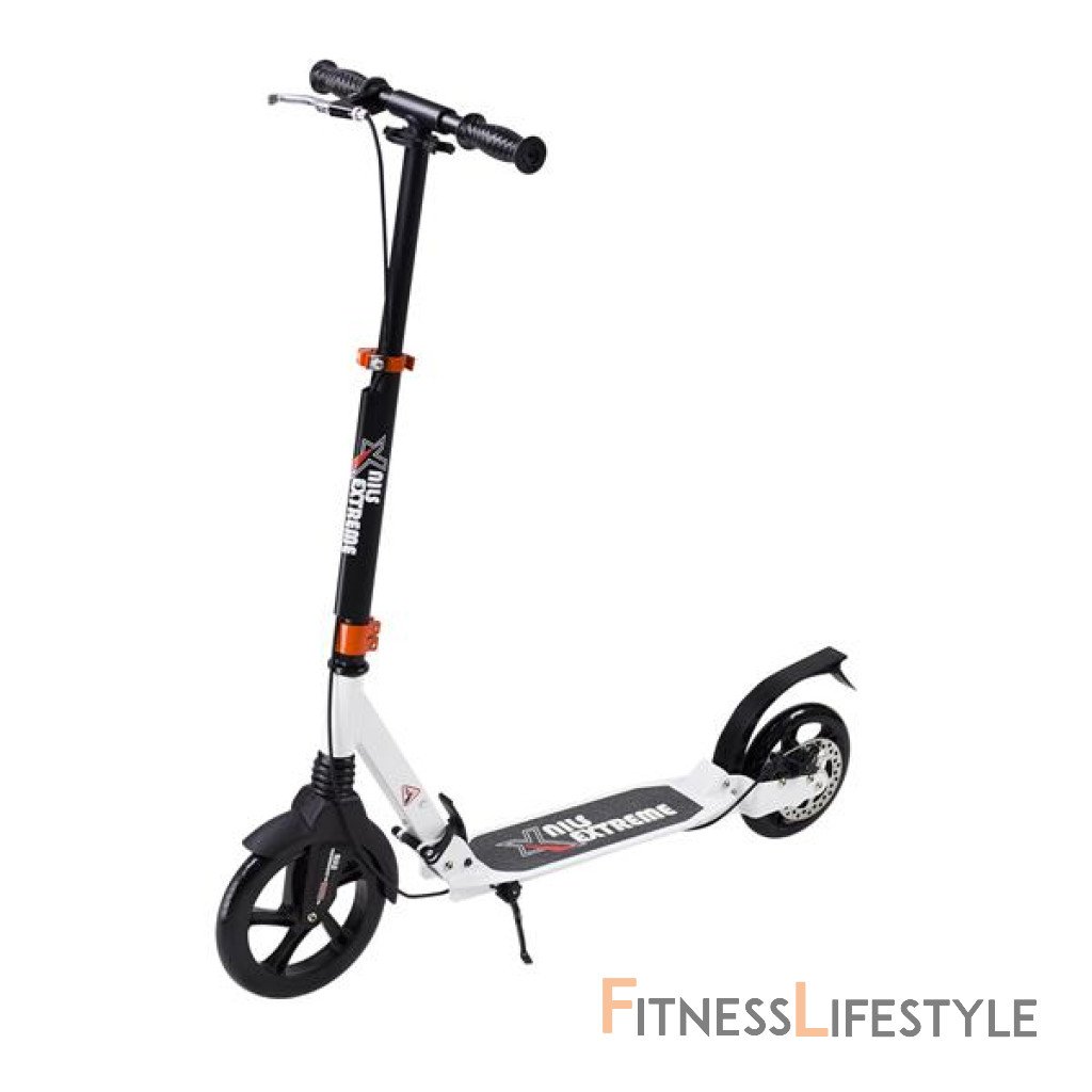 Skladacia kolobežka značky NILS EXTREME HA230T je kolobežka určená pre celú rodinu. Charakteristickou vlastnosťou kolobežky sú dva tlmiče - predné zvislý a zadné vodorovný, zaisťujúci väčší komfort počas jazdy, minimalizujú drncání a pohlcujú otrasy. Vďaka tomu sa produkt dobre osvedčí pri prechádzaní nerovných povrchov. Široký a dlhý nášľap je pokrytý protišmykovým gripom zaisťujúcim správnu priľnavosť topánky. Nastaviteľná riadidlá (až do výšky 106 cm) umožňujú prispôsobiť kolobežku k výške dieťaťa alebo tiež zaisťujú pohodlnú jazdu dospelým osobám. Mimo to má kolobežka 2 rozdielne veľkosti koliesok a to predné 230 mm a zadné 200 mm.