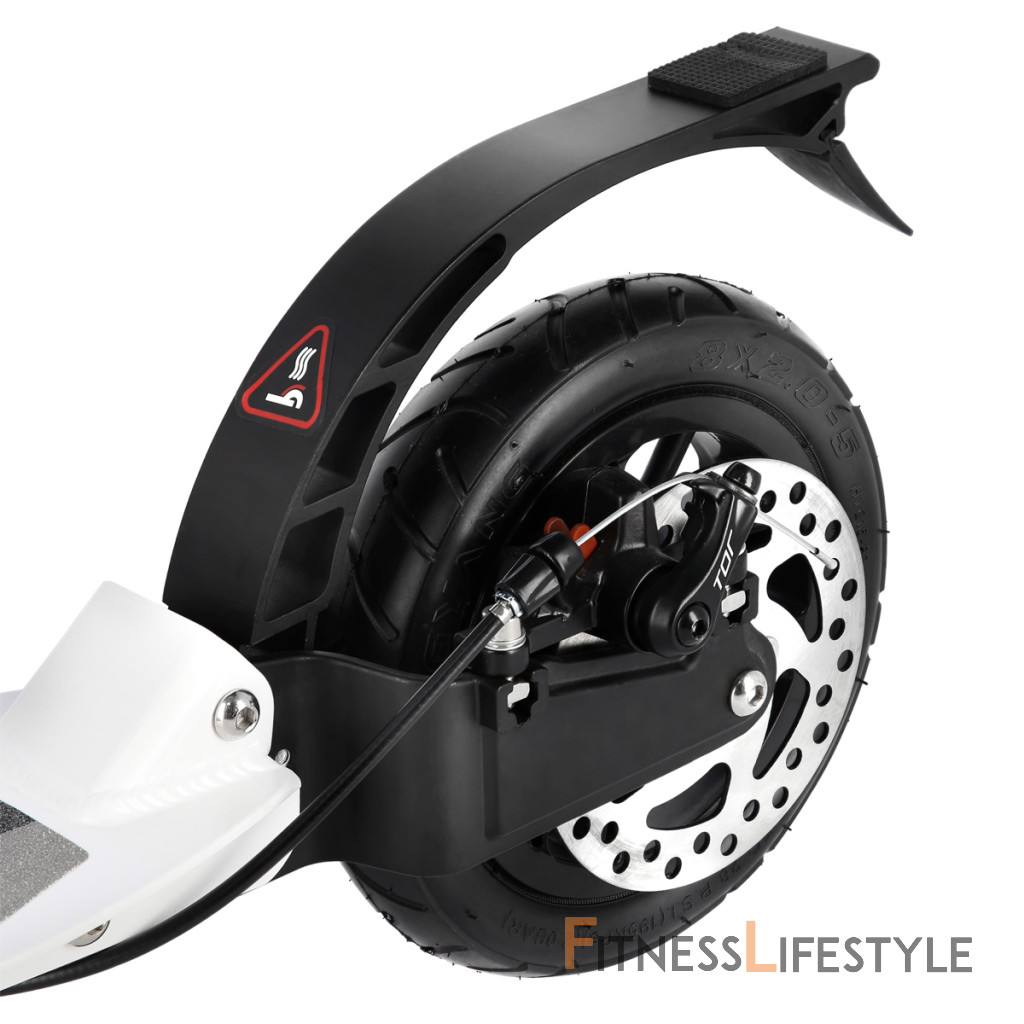 Systém odpruženia obidvoch kolies zvyšuje jazdný komfort. Tlmiče pohlcujú nárazy a jazda po nerovnom asfalte, alebo dlažobných kockách je príjemnejšie a tichšiu. Robustný zadný blatník slúži ako prítlačná brzda, ktorá ešte podtrhuje brzdný účinok kotúča. Samotný kotúč je brzdený jedným piestikmi, ktorý je mechanicky ovládaný lankom z páčky na riadidlách, tie sú opatrené gumovými rukoväťami, ktoré zaisťujú pevný a pohodlný úchop. Veľké kolesá sú osadené ložiskami ABEC 9 a pumpovanie pneumatikou s priemerom 200 milimetrov. Táto kombinácia zabezpečuje rýchlu, plynulú a bezpečnú jazdu. Pumpovanej pneumatiky navyše spolupracujú s tlmičmi a tiež pohlcujú povrchové nerovnosti. Blatník na prednom kolese a skladacie stojanček sú už len pomyselnou "čerešničkou na torte", ktorá přizpívá k maximálnemu možnému komfortu z jazdy a k celkovej radosti zo samotného použivania modelu MH208T.