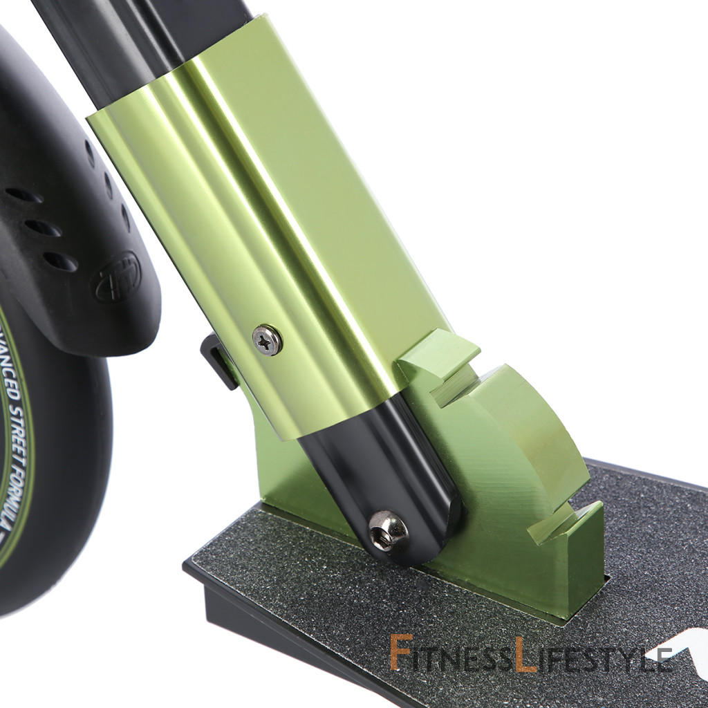 Systém odpruženia predného kolesa zvyšuje jazdný komfort. Tlmič pohlcuje nárazy a jazda po nerovnom asfalte, alebo dlažobných kockách je príjemnejšie a tichšiu. Robustný zadný blatník slúži ako nožný, prítlačná brzda. Široká riadidlá sú opatrené gumovými rukoväťami, ktoré zaisťujú pevný a pohodlný úchop. 230 milimetrov veľké kolesá sú osadené ložiskami ABEC 9. Táto kombinácia zabezpečuje rýchlu, plynulú a bezpečnú jazdu. Blatník na prednom kolese a skladacie stojanček sú drobnosťami, ktoré přizpívají k maximálnemu možnému komfortu z jazdy a k celkovej radosti zo samotného použivania modelu MH235.