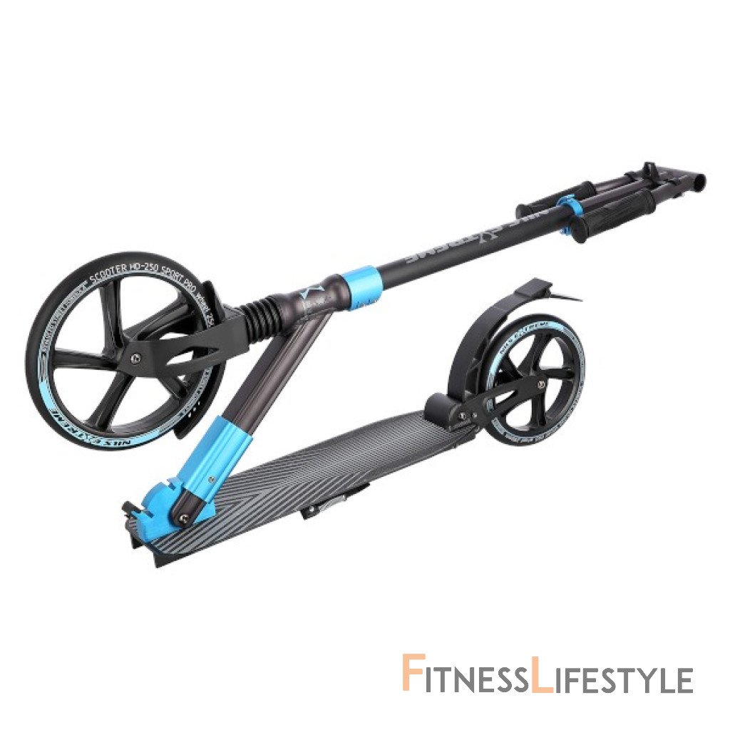Kolobežka NILS Extreme HM250 je vhodná pre deti aj dospelých. Charakteristikou modelu HM250 je tlmič na prednom i zadnom kolese, široká riadidlá a výklopný stojan.