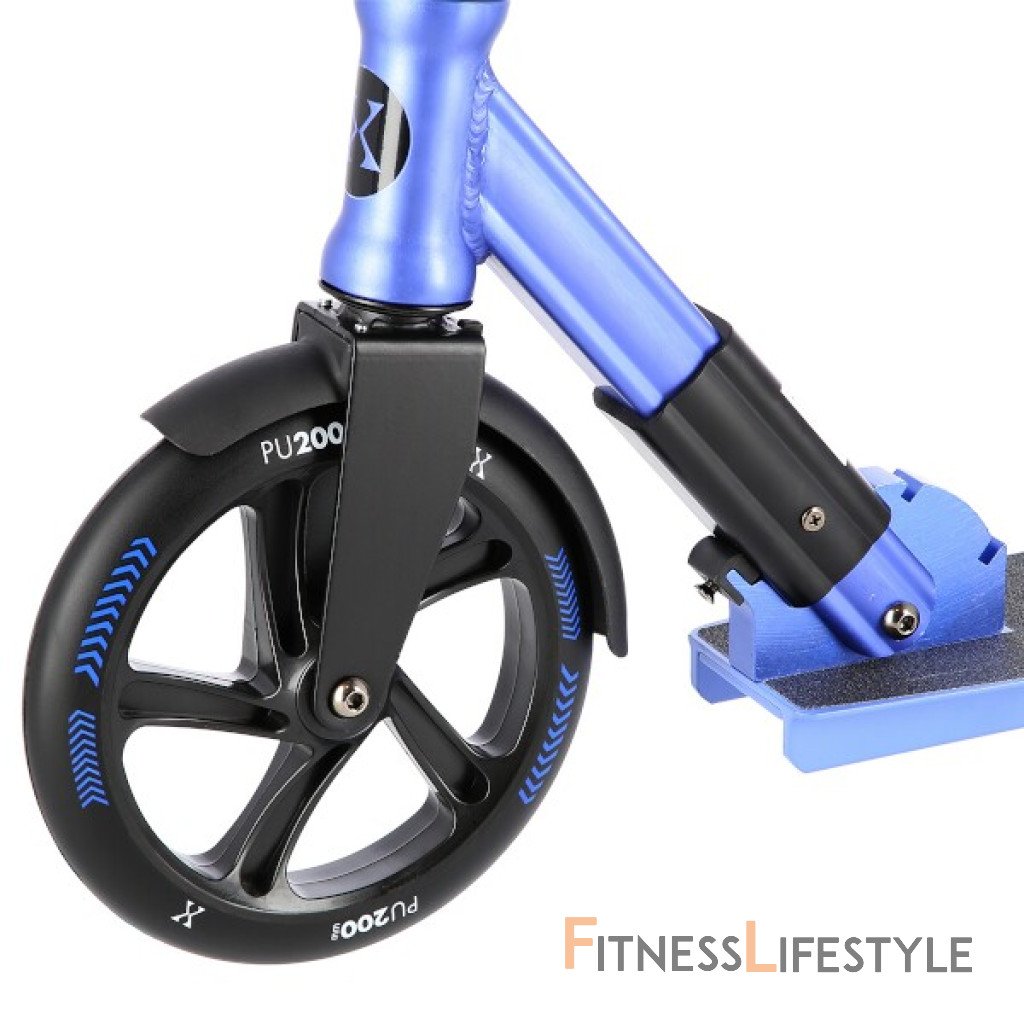 Zadný blatník slúži ako prítlačná brzda. Široká riadidlá sú opatrené gumovými rukoväťami, ktoré zaisťujú pevný a pohodlný úchop. 200 milimetrov veľké kolesá sú osadené ložiskami ABEC 9. Táto kombinácia zabezpečuje rýchlu, plynulú a bezpečnú jazdu. Blatník na prednom kolese a skladacie stojanček sú drobnosťami, ktoré přizpívají k maximálnemu možnému komfortu z jazdy a k celkovej radosti zo samotného použivania modelu MH205.