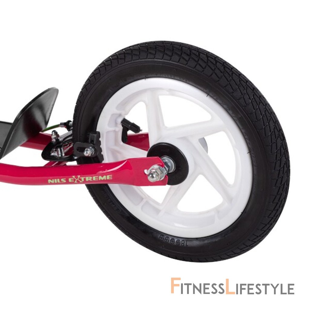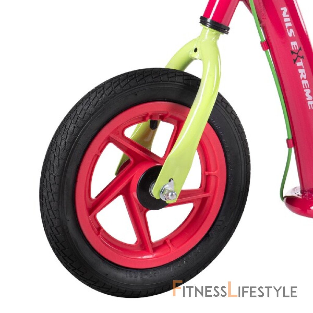 Kolobežka NILS Extreme WH113C má nosnosť 60 kilogramov a je tak určená pre deti a dorast. Rám, vidlice a riadidlá sú vyrobené z kvalitnej ocele. 12 ", plastové ráfiky sú obuté pumpovanými pneumatikami, ktoré zaručujú vysoký jazdný komfort a ľahké prekonávanie drobných nerovností. Model WH113C je teda ideálnou voľbou pre jazdu po asfaltových cestách, dláždených mestských uličkách, ale aj po lesných chodníkoch.