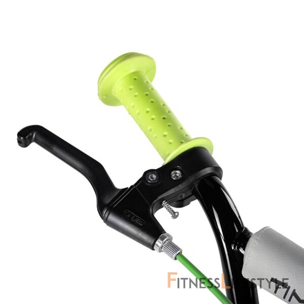 WH113C je opatrená zadnou brzdou, sklopným stojanom a molitanovým chráničom na rúrke riadidiel. Gumové gripy zaisťujú pevný a pohodlný úchop.