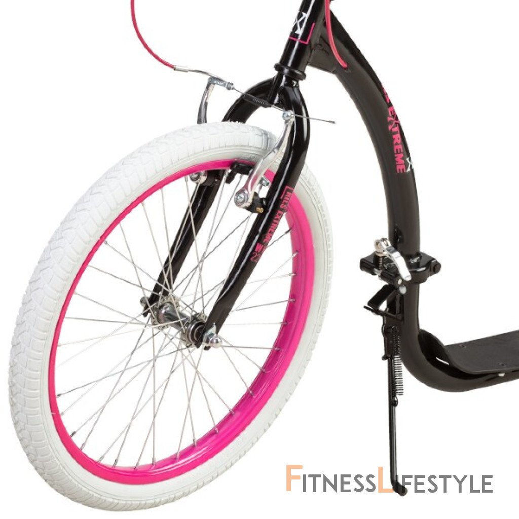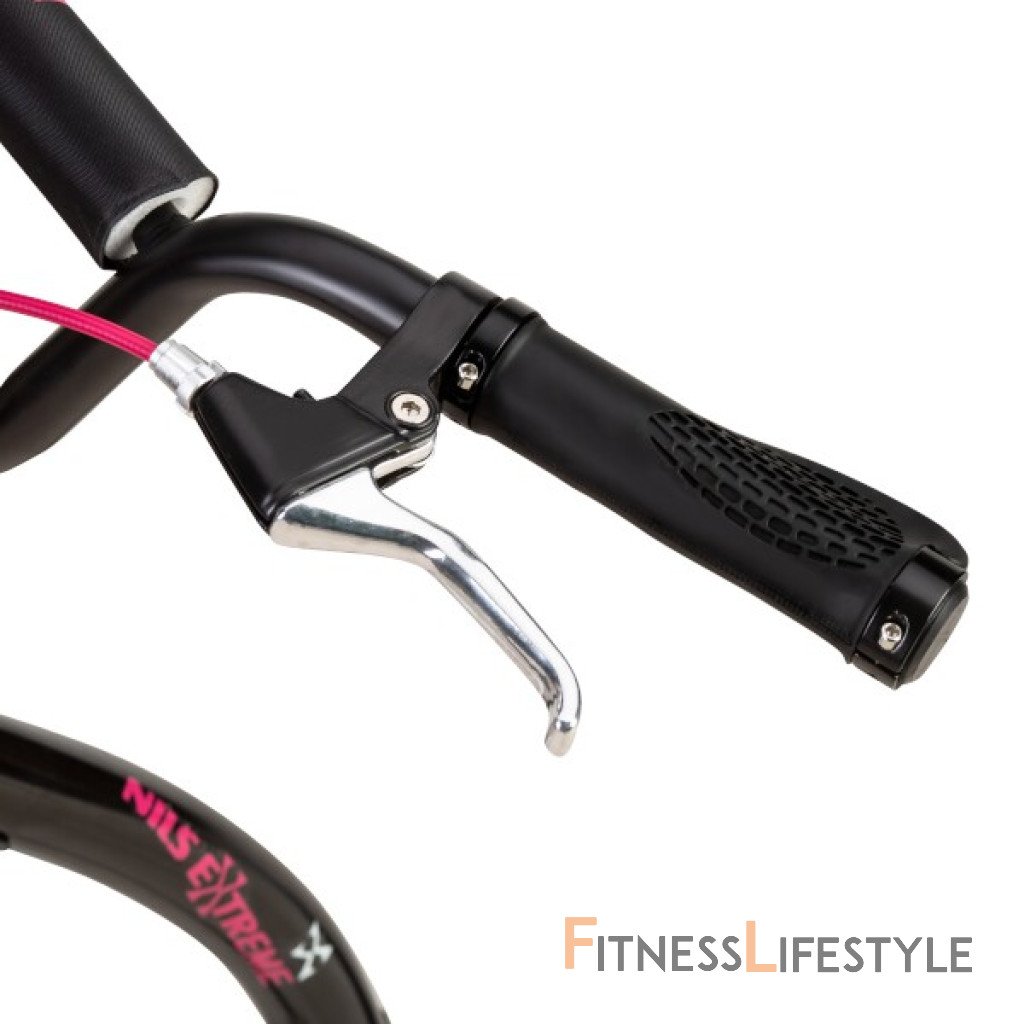 Kolobežka NILS Extreme WH227F je ideálnym prostriedkom pre zdolávanie mestských uličiek a vďaka možnosti zloženia si môžete brať kolobežku všade so sebou. Model WH227F je kolobežka so športovým charakterom. Vďaka nosnosti 100 kg si ju môže užívať celá rodina. Rám je vyrobený z kvalitnej ocele, na ráfiky sú obuté pneumatiky s dušou a pre maximálnu bezpečnosť je kolobežka vybavená oceľovými brzdami typu "V-brake" a most riadidiel je opatrený penovým návlekom. Tieto vlastnosti kolobežku priamo predurčujú na použitie na asfalte, dlažbe, ale aj na štrku a nespevnených chodníkoch. Pre vyšší jazdný komfort sú pohodlné gripy fixované objímkami s skrutkou, takže sa nebudú pretáčať, vďaka tomu poskytujú istotou v konaní. Integrovaný stojanček potom uľahčuje parkovanie kolobežky a 20 "veľké predné koleso zlepšuje ovládateľnosť a priestupnosť terénom.