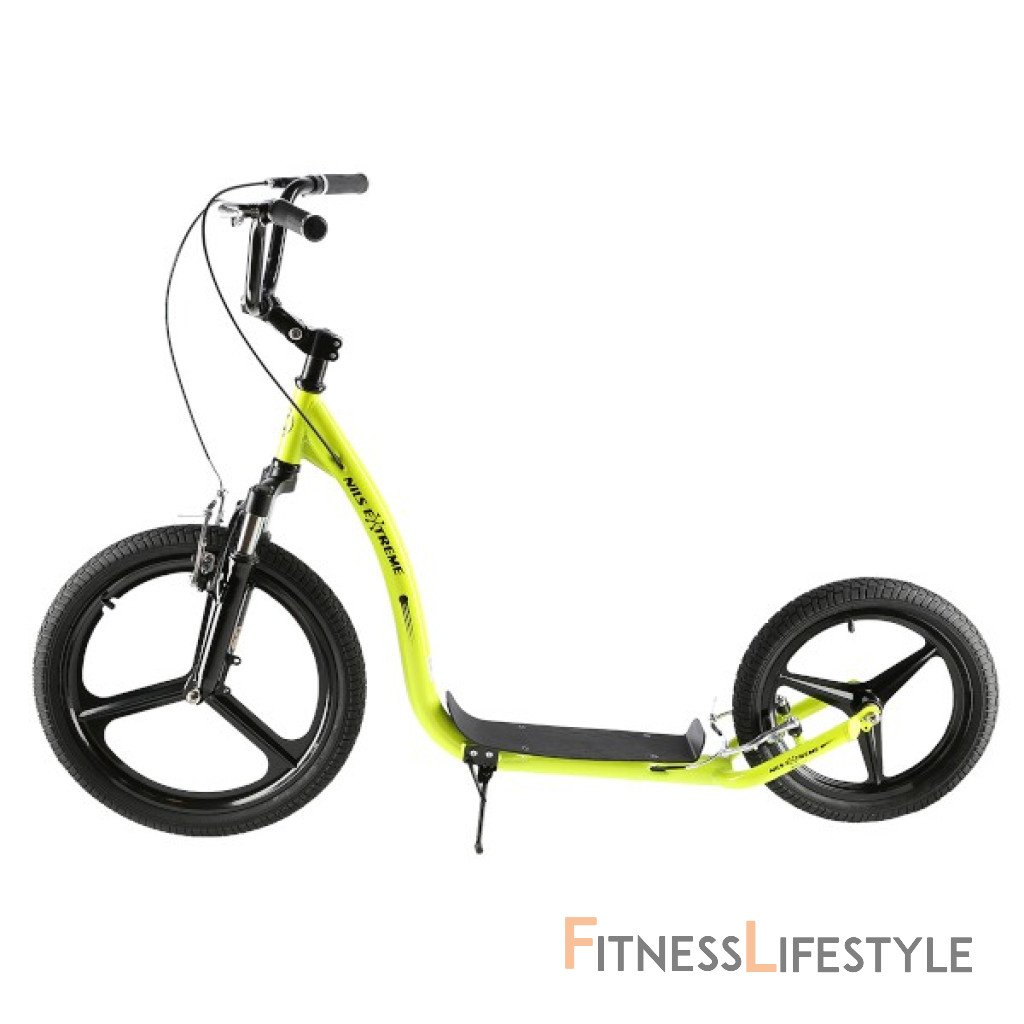 Kolobežka NILS Extreme WHS300 je ideálnym prostriedkom pre zdolávanie mestských uličiek, dláždených chodníkov a lesných chodníkov. Model WHS300 je kolobežka so športovým charakterom. Vďaka nosnosti 100 kg si ju môže užívať celá rodina. Rám je vyrobený z kvalitnej ocele, na ráfiky sú obuté pneumatiky s dušou a pre maximálnu bezpečnosť je kolobežka vybavená brzdami typu V-brake. Tieto vlastnosti kolobežku priamo predurčujú na použitie na asfalte, dlažbe, ale aj na štrku a nespevnených chodníkoch. Integrovaný stojanček potom uľahčuje parkovanie kolobežky a veľké predné koleso zlepšuje ovládateľnosť a priestupnosť terénom. Pre pohodlné prekonávanie dier a výmoľov je predná vidlica osadená tlmičmi s pevne nastaveným odskokom.