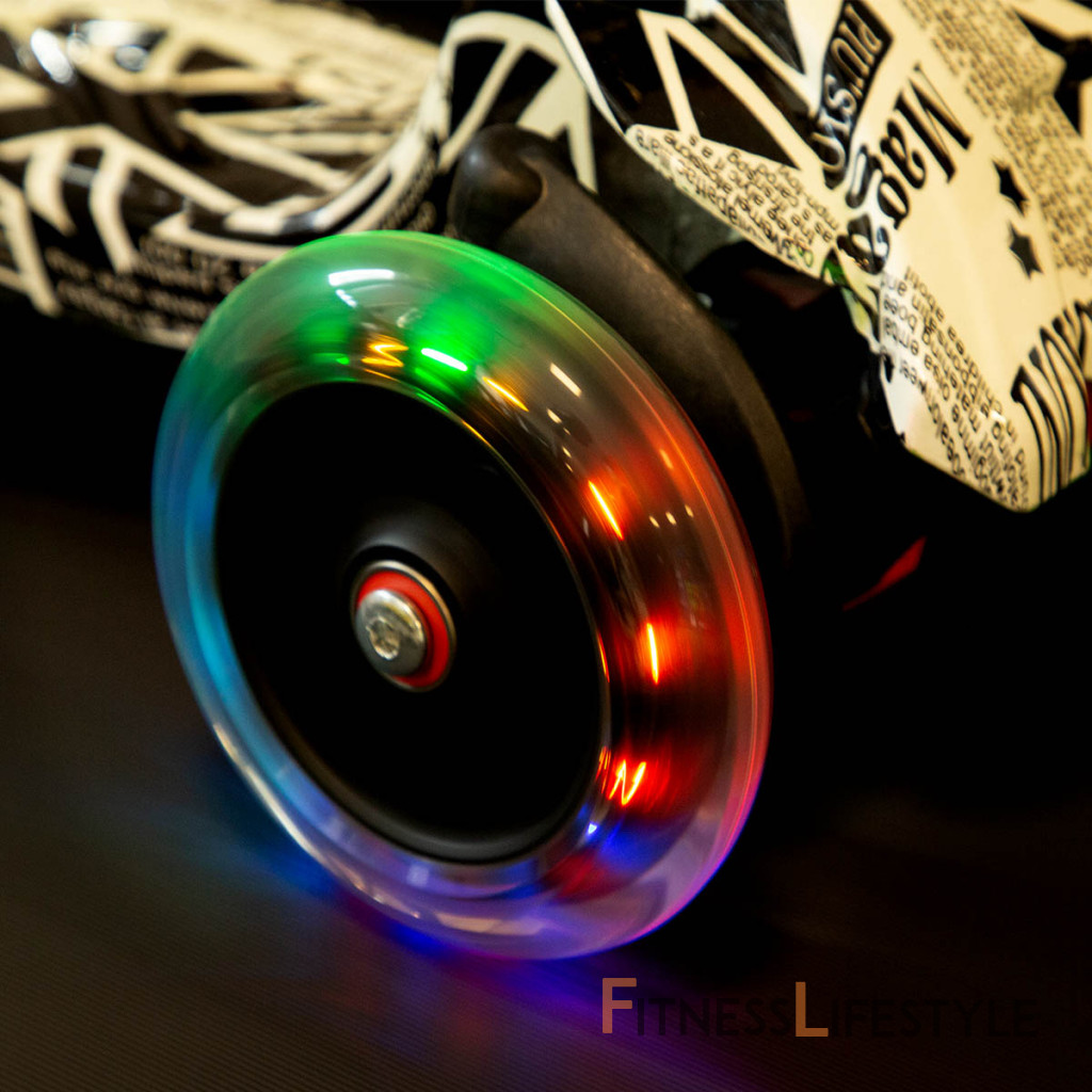 Trojkolesové kolobežka NILS EXTREME HLB11 je určená pre malé jazdca. Kolobežky zatáča naklopením riadidiel do strany, tým predchádza převrhutí. K zvýšeniu stability napomáha zdvojené zadné koliesko, to je opatrené nášľapnou brzdu, ktorú je možné ovládať aj páčkou z riadidiel. Predné kolieska majú rozmer 120 mm a napomáhajú k prekonávaniu drobných nerovností a prekážok. Zadné kolieska majú rozmer 80 mm. Všetky kolieska sú vyrobené z polyuretánu a sú vybavené LEDkami, ktoré počas jazdy svietia, navyše sú odpružené pre maximálny komfort. Vzhľadom k určeniu kolobežky pre menšie jazdcov sú kolieska osadené ložiskami ABEC 5. Riadidlá sú výškovo nastaviteľná v troch krokoch, horná kríž je osadený kompasom a riadidlá idú sklopiť pre jednoduchšie prenášanie. Kolobežku si Vaše ratolesti najviac užijú na rovnom asfalte. Nosnosť je 60 kg.