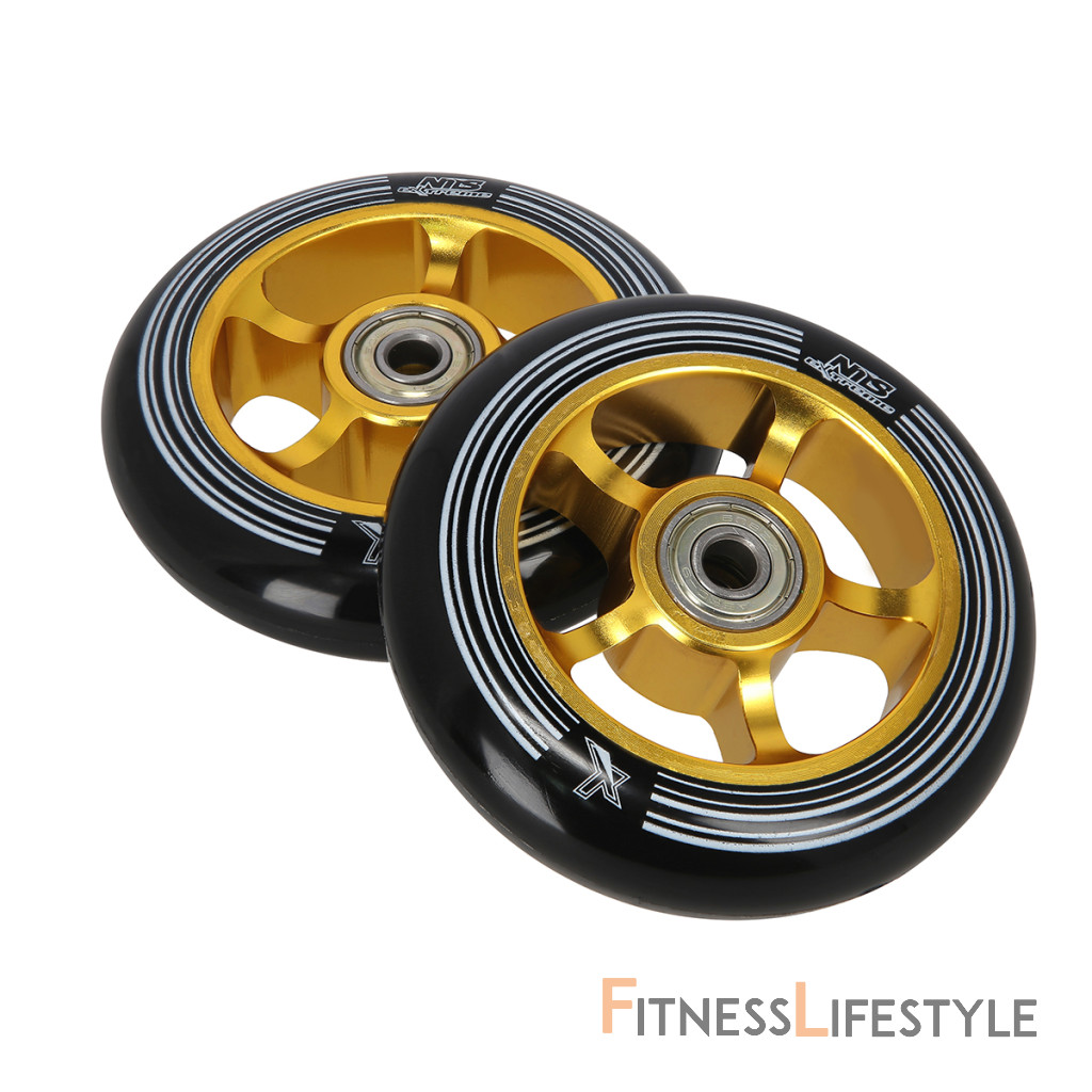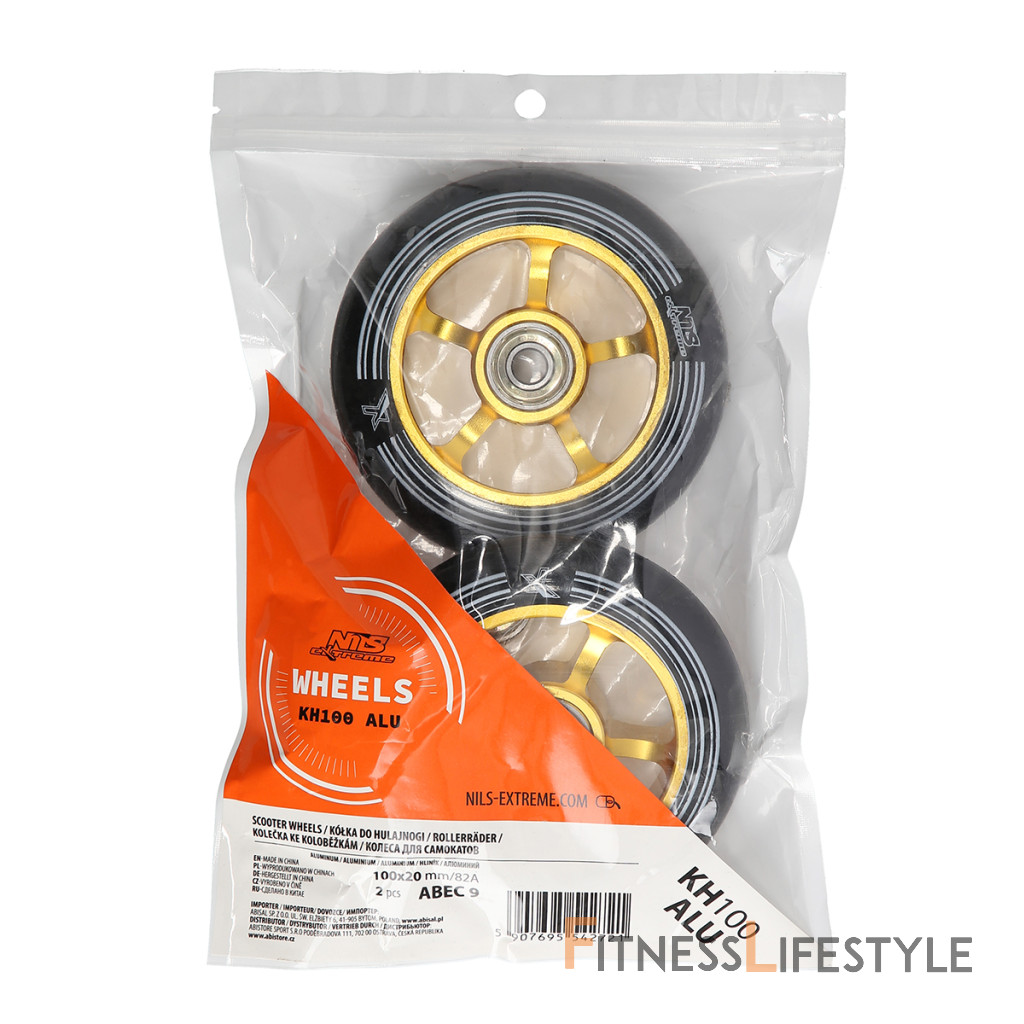 Náhradné kolieska pre freestylové kolobežky KH100 ALU vyrobené z polyuretánu alebo ak je vo skratke PU. Najdôležitejšie parametre tohto typu kolies sú ich priemer a tvrdosť. Priemer kolies má priamy vplyv na rýchlosť jazdy a manévrovateľnosť. Na druhej strane tvrdosť určuje jazdný komfort a priľnavosť k zemi, na ktorej sa pohybujeme.