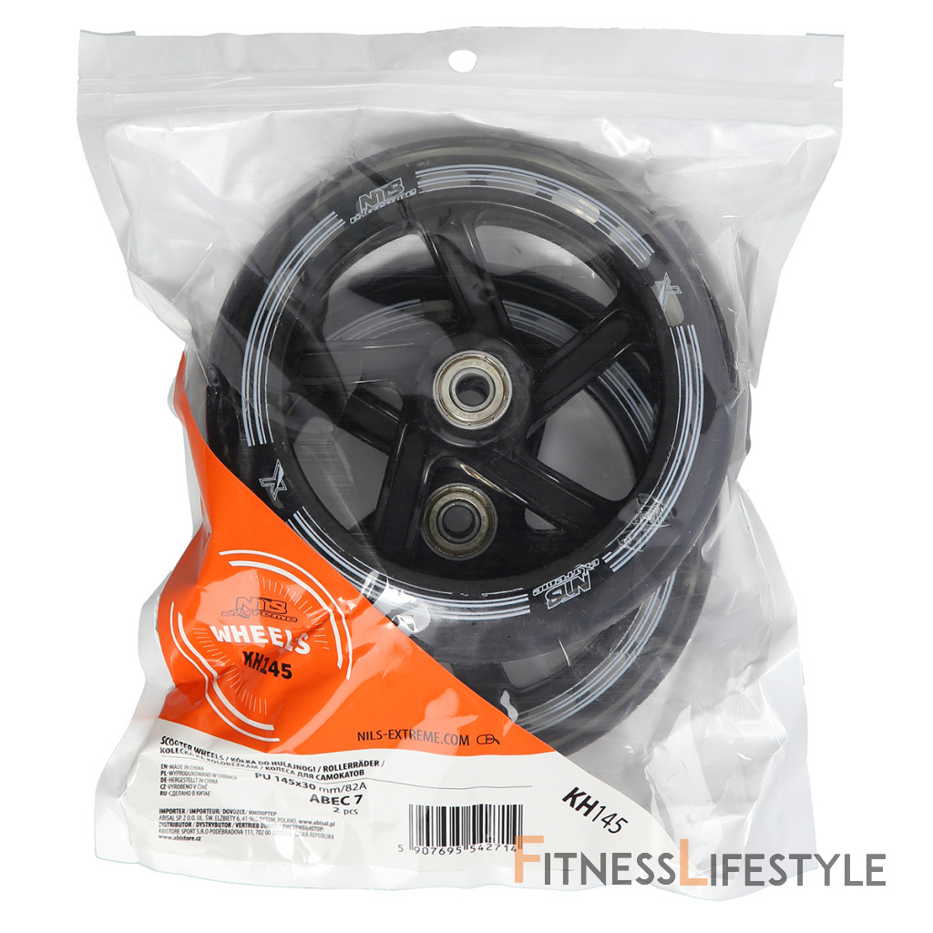 Náhradné kolieska pre kolobežky KH145 vyrobené z polyuretánu alebo ak je vo skratke PU. Najdôležitejšie parametre tohto typu kolies sú ich priemer a tvrdosť. Priemer kolies má priamy vplyv na rýchlosť jazdy a manévrovateľnosť. Na druhej strane tvrdosť určuje jazdný komfort a priľnavosť k zemi, na ktorej sa pohybujeme. Súčasťou balenia sú aj ložiská ABEC 7.