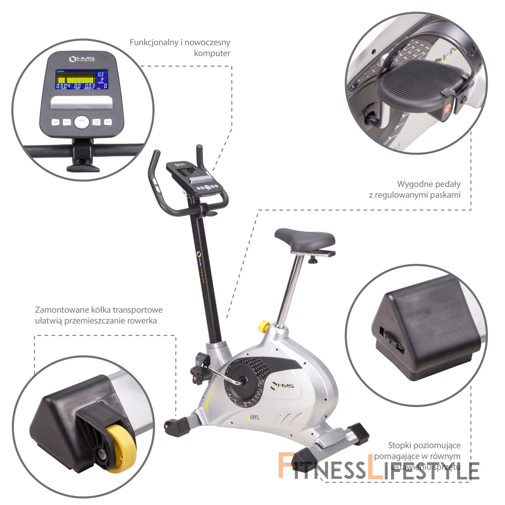 Konštrukcia modelu M6993 je vyrobená zo solídnej ocele, vďaka ktorej je nosnosť trenažéra až 120 kilogramov. Riadidlá s elektródami pre snímanie srdcového tepu, je možné naklápať. Sedlo je polohovateľné vertikálne do 9-tich polôh a v horizontálnej rovine je umiestnené na koľajnicu pre plynulý posun. Vzdialenosť stredu sedadla od pedálov tak ide nastaviť v rozsahu 64 - 90 centimetrov. Predný stabilizátor je vybavený kolieskami pre jednoduché presúvanie. Zadný stabilizátor zase ponúka výškovo nastaviteľné podložky pre vyrovnanie trenažéra do roviny.