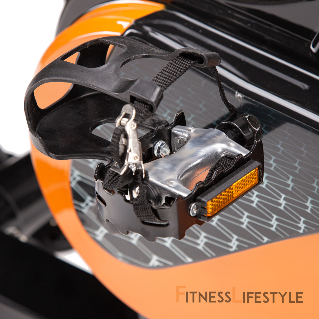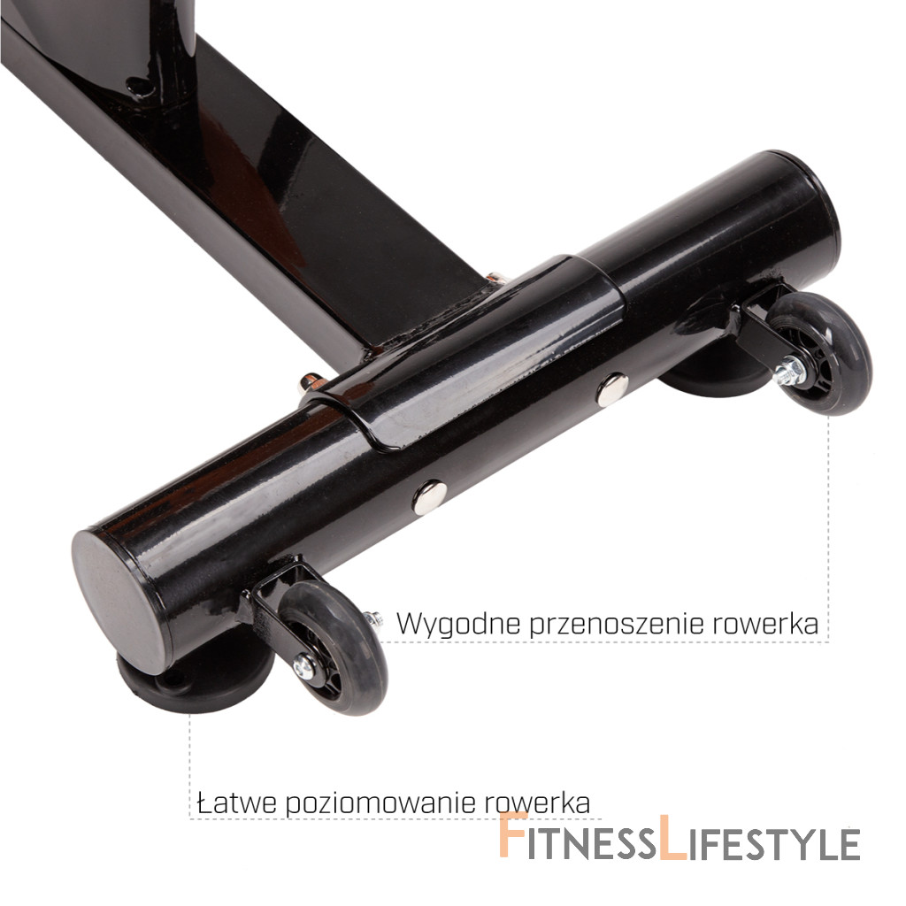 Záťažové koleso má hmotnosť 20 kilogramov. Odpor je generovaný prítlačnú brzdou, ktorá je plynule nastaviteľná pomocou mechanického regulátora pod riadidlami. Pre maximálny komfort počas tréningu sú riadidlá opatrené lakťovými opierkami a sedlo je ergonomicky tvarované s ventilačným otvorom. Riadidlá i sedlo sú polohovateľné vo vertikálnom aj horizontálnom smere. Oceľové pedále sú osadené klasickými košíky s nastaviteľným remienkom, ktoré zaisťujú pevnú polohu chodidla. Veľký a prehľadný displej počítača zobrazuje všetky údaje prehľadne pod sebou, takže už nie je potrebné sa preklikávať cez jednotlivé hodnoty. PC navyše disponuje rozhraním Bluetooth pre spojenie s mobilnou aplikáciou, v ktorej môžete sledovať svoje tréningy a postupy. Konzola na riadidlách umožňuje odloženie mobilného telefónu, alebo tabletu a až dvoch fliaš.
