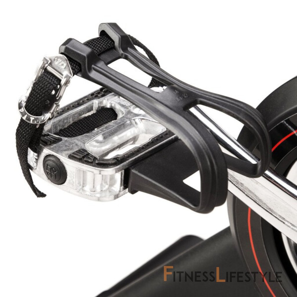Oceľové pedále sú osadené košíky s nastaviteľným remienkom, toto riešenie umožňuje použitie akejkoľvek topánky. Predné stabilizátor s transportnými kolieskami umožňuje jednoduché presúvanie a uskladnenie trenažéra, ak práve nie je využívaný. Obaja stabilizátory sú potom opatřeby výškovo nastaviteľnými skrutkami pre vyrovnanie trenažér do roviny aj na nerovnej podlahe.