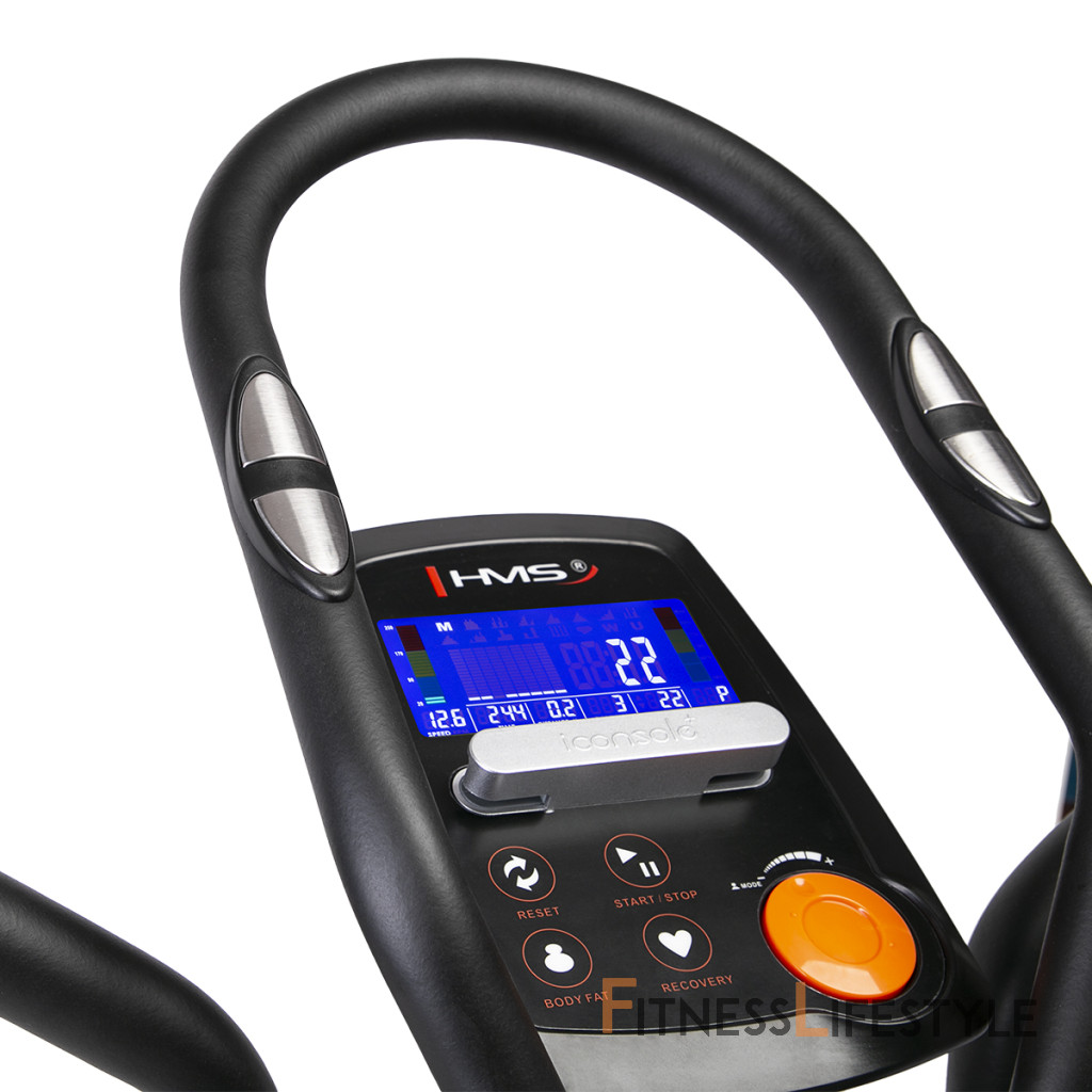 Magnetický elitpický trenažér HMS H 6191W je vybavený inovatívnym počítačom s možnosťou pripojenia mobilného zariadenia s operačným systémom Android alebo iOS. Stačí stiahnuť do Vášho chytrého telefónu alebo tabletu bezplatnú aplikáciu iConsole + alebo Fit Hi Way a získate prístup k interaktívnym informáciám.